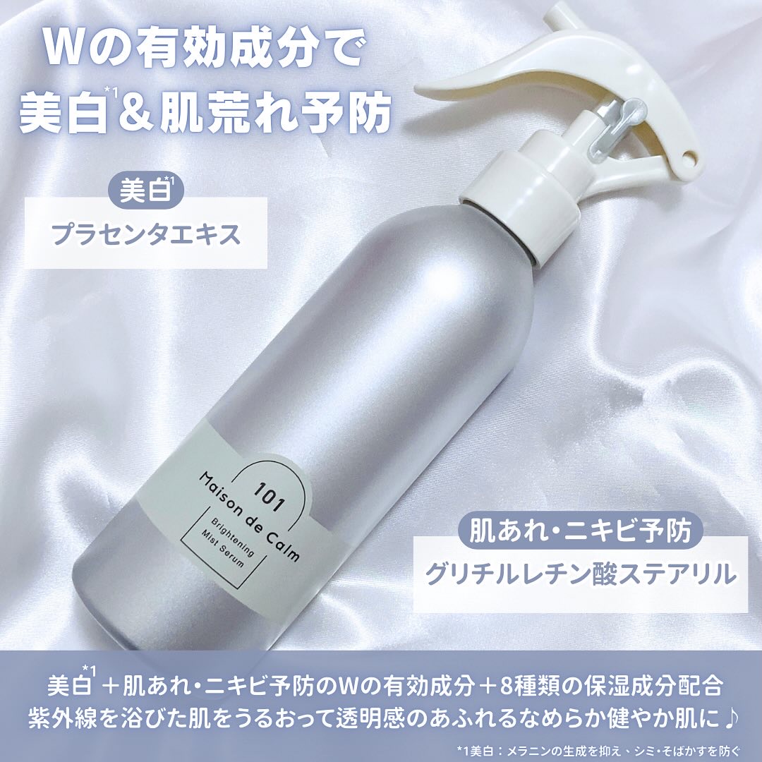 ..୨୧୨୧メゾンドカームブライトニングミストセラム【医薬部外品】 こちらは片手でシュッとケアできるミストタイプのボディ用美白美容液💁🏻♀️✨ 贅沢なWの有効成分で美白・ニキビ、肌あれ予防効果❣️ 夏に向けて、日焼け前の美白ケアや紫...