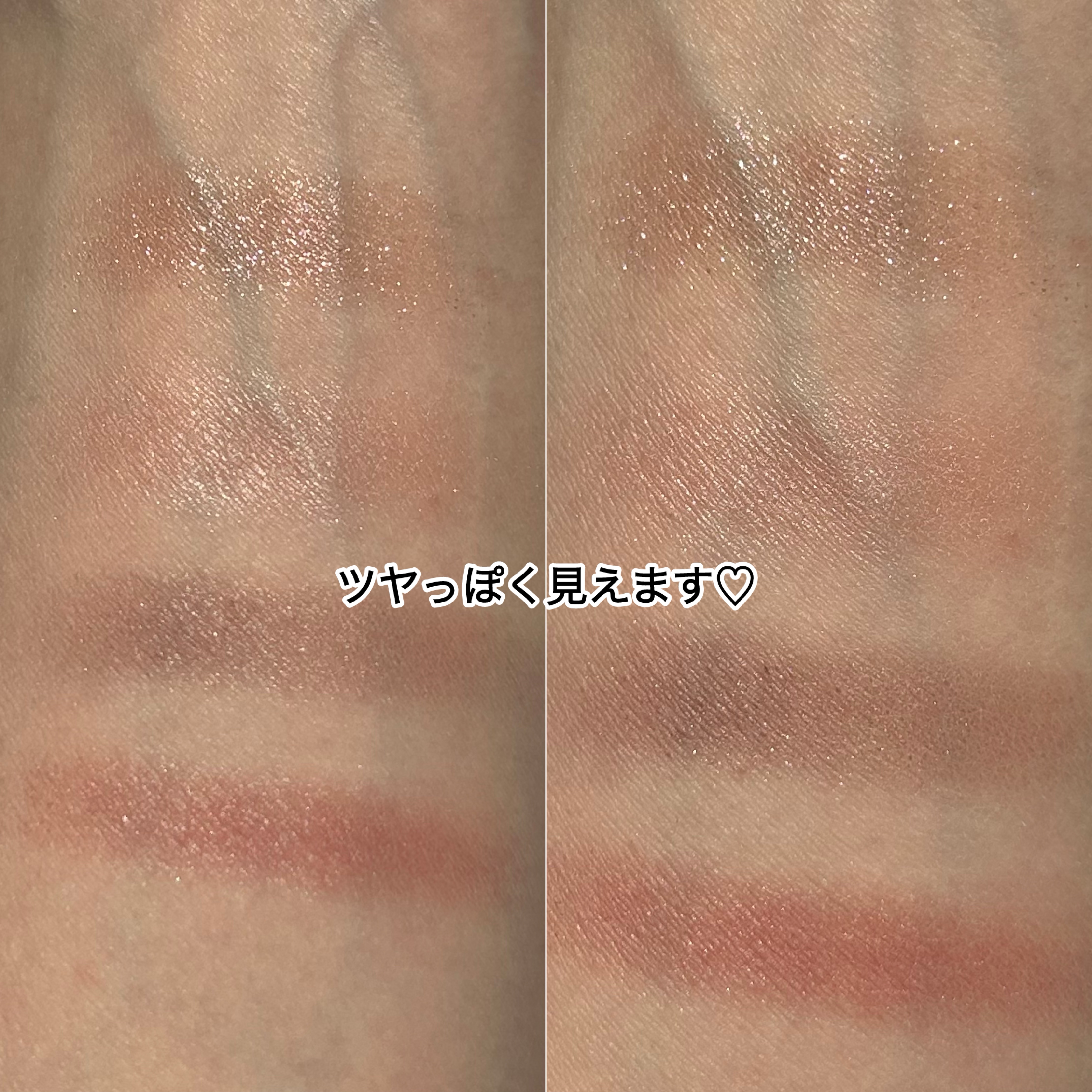 潤い感、透明感、ツヤ感があります♡ リップバームのような質感でしょうか。かためのテクスチャーです。 リップにもチークにも使える優れアイテム♡ しっかりお色がつきます。初めは少量で塗る回数を重ねて、お色味を調整すると○だと思います。 黒のCHANELマークにガラスの容器が素敵です♡ 気分が上がります♡いろんな使い方ができるところが◎だと思います♡