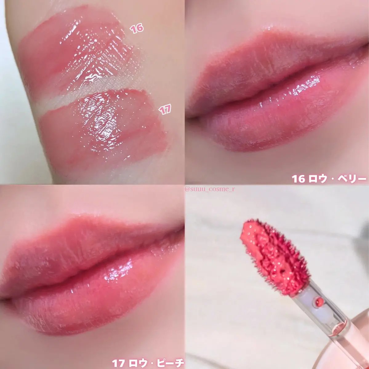 ほんまにほんまに可愛い💖 ピンク好きにはたまらん〜🩷🩷🩷 特に上の2色はラメのきらめきがやばい✨✨ 真ん中のラメは発色も良くて苺っぽいカラー🍓 自然なツヤが出て、ほんのりキラキラするのがほんとに可愛い!!ほんのりピンク味のあるベージュで誰でも使いやすい色味だと思いました✨✨