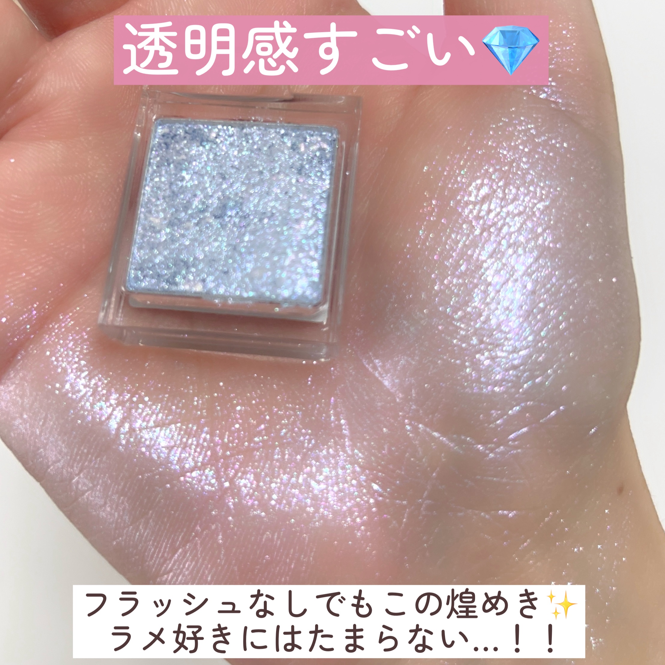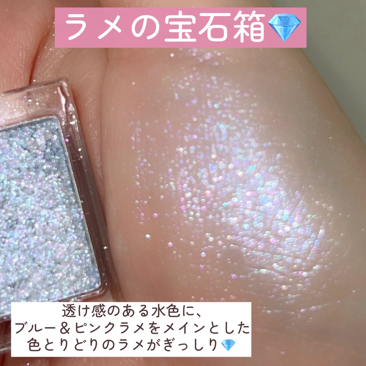しっとりなめらかな粉質で、肌に光が溶け込む。 ツヤの美しさや発光具合は写真の通り。 ひと塗りで極上の艶を纏うことができます。 私が1番感動したのは 03 パールグロウ 水色やパープルをはじめとした細かいラメがぎっしり。 まるでダイヤモンドのような輝きでこれが最高💎 いざ肌に乗せると透明感たっぷりで白浮きしません。 今日アイシャドウとして使ってみたらまぶたが濡れたように艶めいて最高だった!! ラメ大好き芸人のみなさんは絶対チェックして欲しいです。 パケもしっかり可愛いです♡ 中身も見た目ももはや無敵。 これ、買わない理由ある??