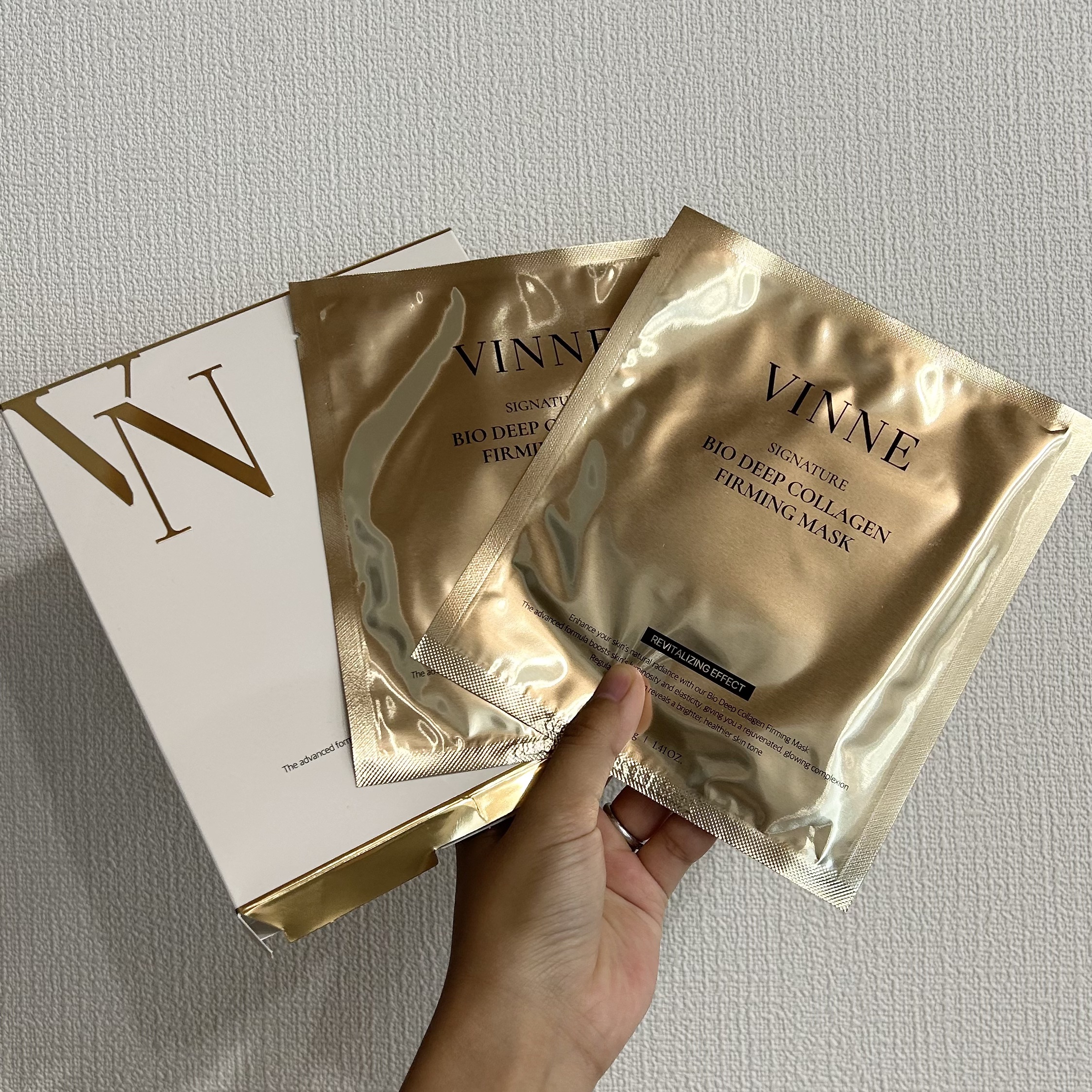VINNEシグニチャーバイオディープコラーゲンファーミングマスクをお試しさせていただきました。高級感のある素敵なデザイン。ぷるんぷるんのマスクで使うのが楽しい!上下に分かれているので、顔に密着させやすいです。ぴたっと吸いつくように密着してくれ...