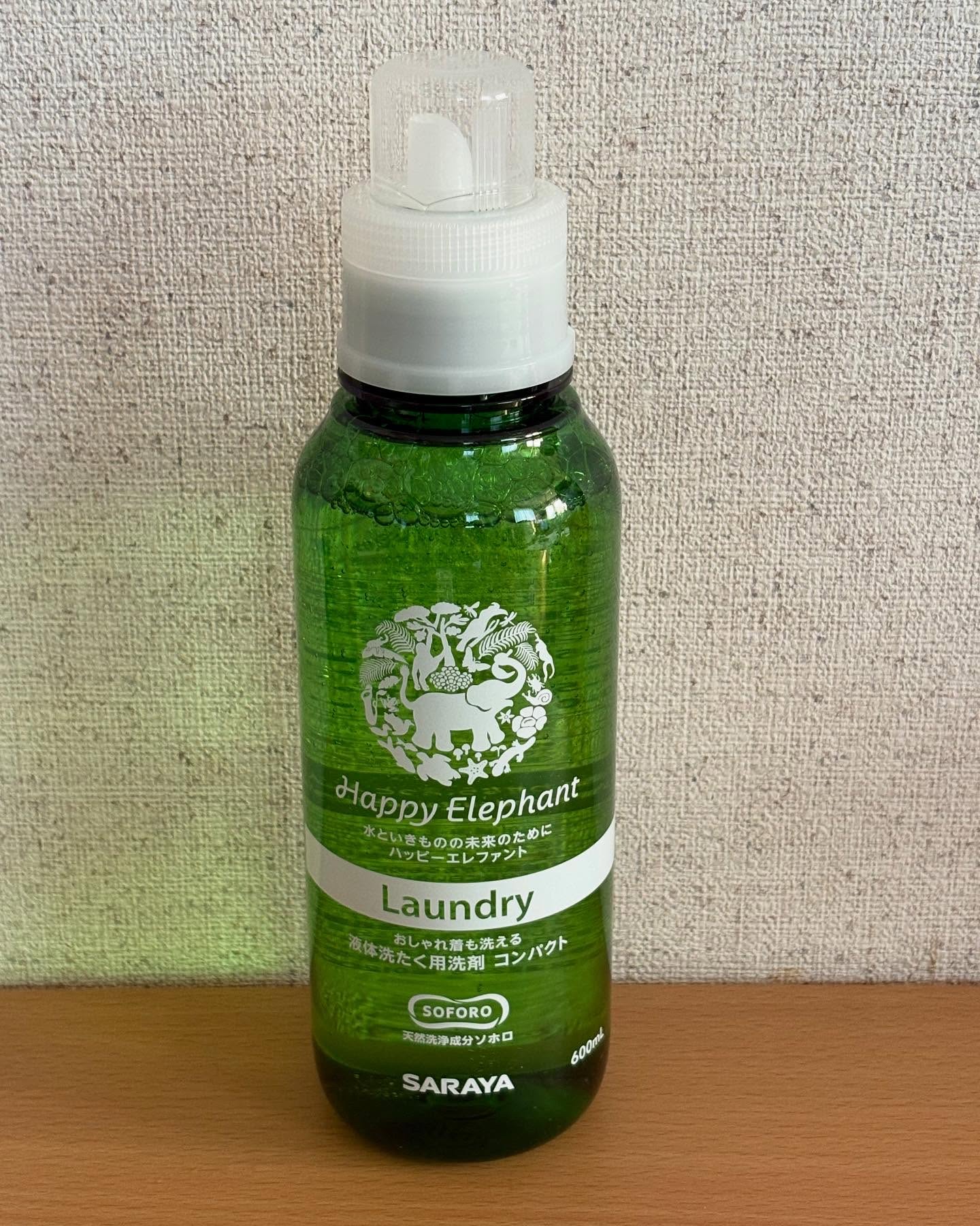 おしゃれ着も洗える濃縮タイプの液体洗たく洗剤ハッピーエレファント液体洗たく用洗剤使わせていただきました。植物系の洗剤でありながら、高い洗浄力とすすぎ性を実現しました。濃縮タイプ※なので、少ない量で汚れをしっかり落とします。※従来品に比べ2/3...