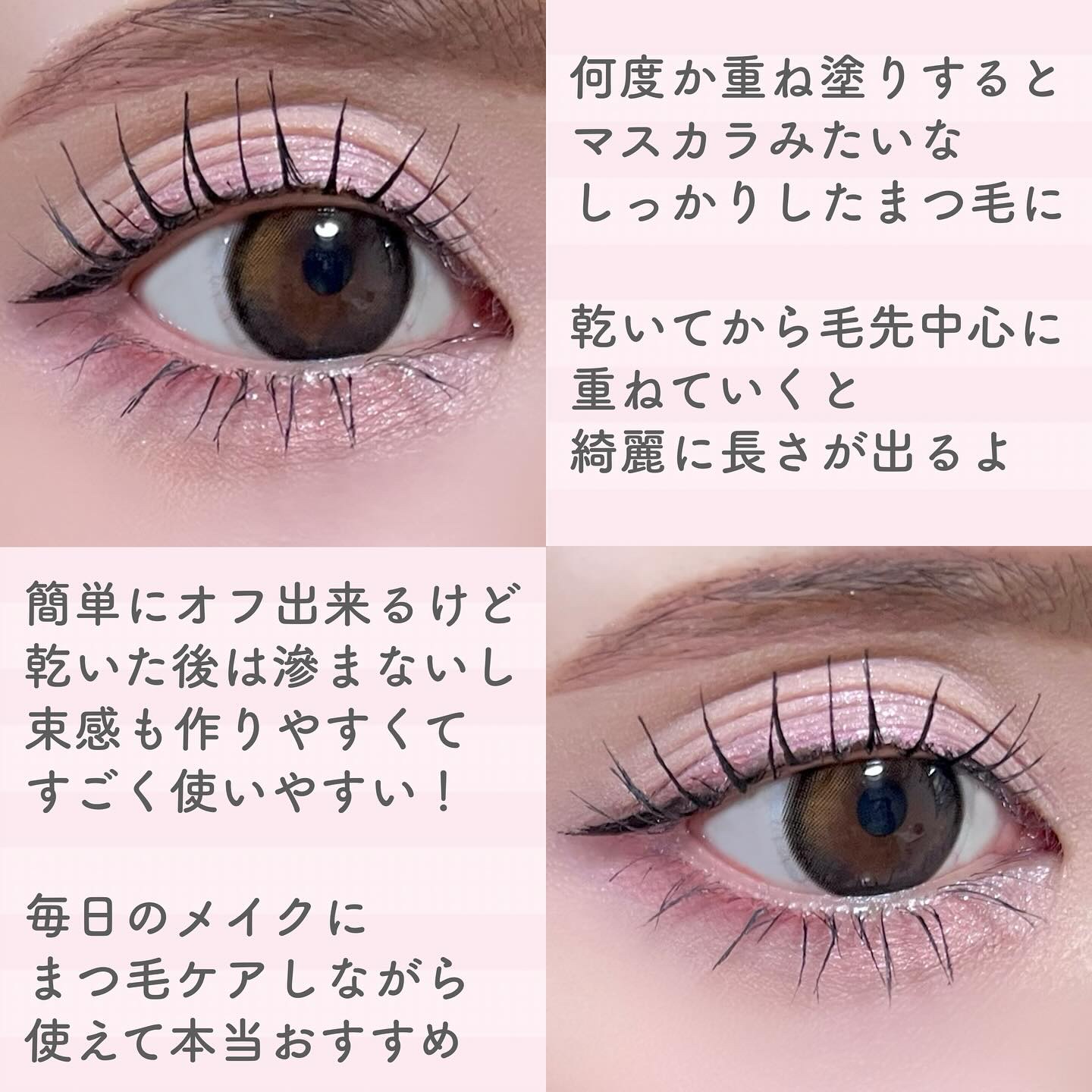 実際に使用した私の感想としては🗣️☑︎マスカラ効果のある美容液→よくあるクリア色のまつ毛美容液ではなく ブラックエッセンスが入っているので 日中のアイメイクに使えてGOODです👌🏻❣️☑︎細身で塗りやすいブラシ→ほどよくカーブのある細身のブラ...