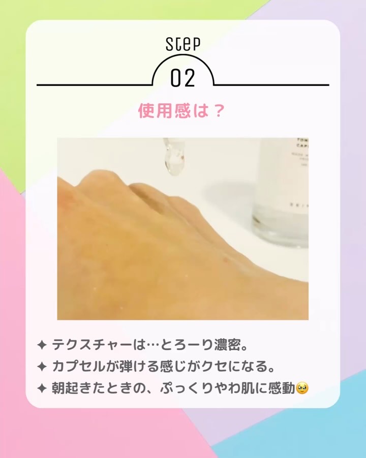 | とろみのあるもっちっとテクスチャですーっと伸びて使うと肌がしっとり♡ 重ね付けしても重くならず使いやすいです◎ | 詳細を見る | |