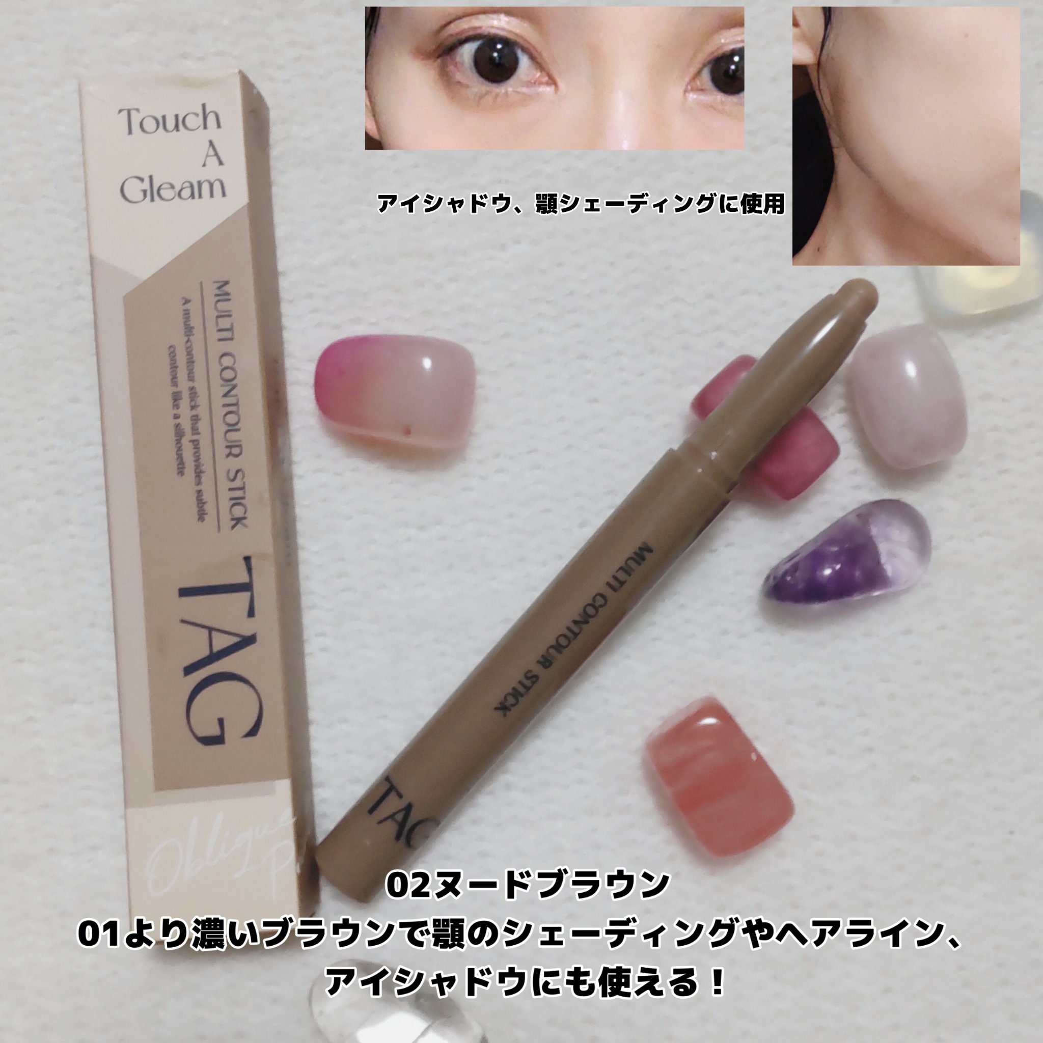 これシェーディングが簡単になる!TAGマルチコントゥアスティック01号ヌードベージュ02号ヌードブラウン各1,250円(税込)するする描きやすい✨ひとつで鼻筋、目元、顎、ヘアラインなど陰影がつくれるTAGのマルチコントゥアスティック🤎パウダー...
