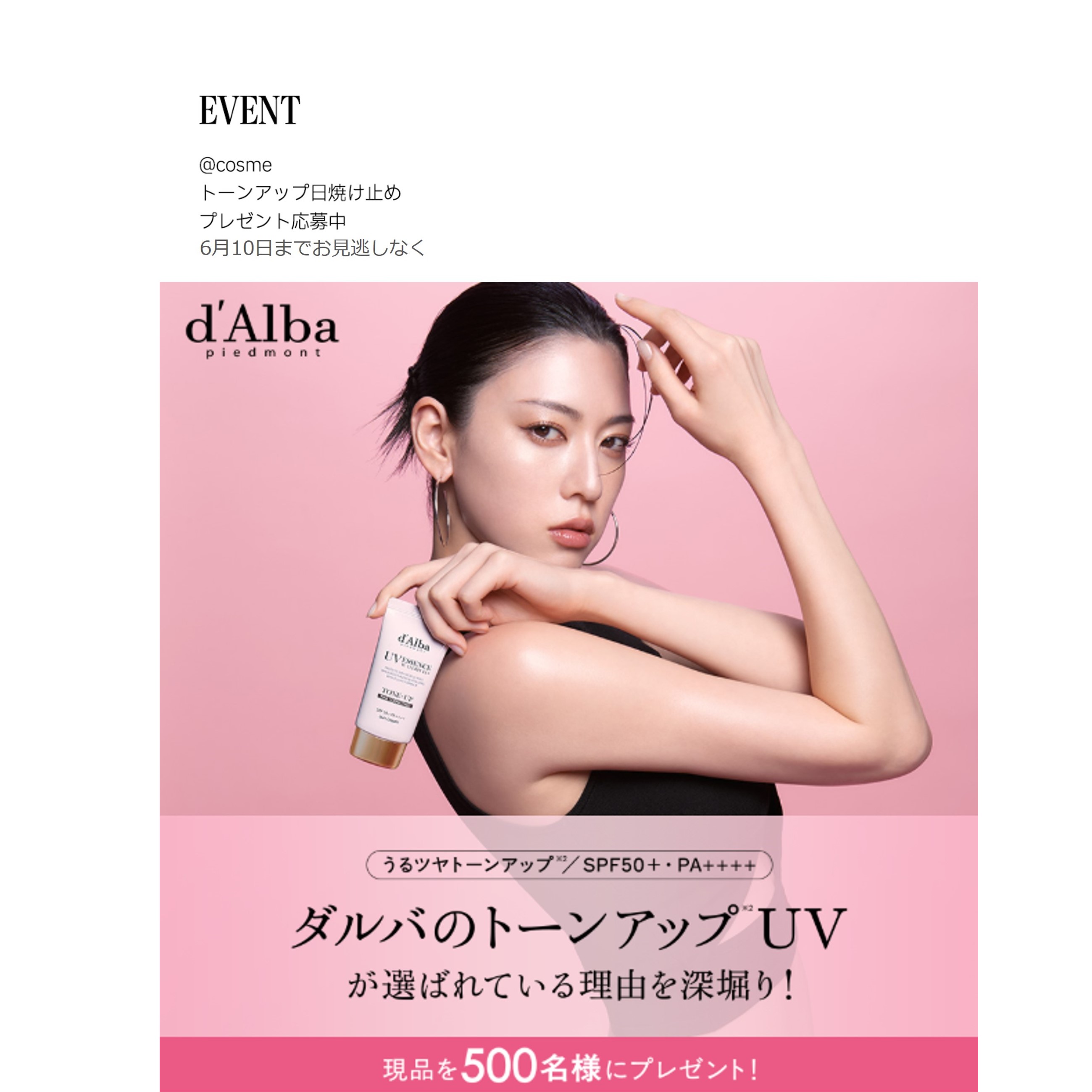 🩷d'Albaウォータフルトーンアップサンクリーム透明感&美肌に仕上がるピンクのクリームだよ!素肌みたいにナチュラルで、違和感のないトーンアップ✨日焼け止め+化粧下地+トーンアップの万能アイテムでこれ1本でいいのも嬉しい!●水分感たっぷりなク...