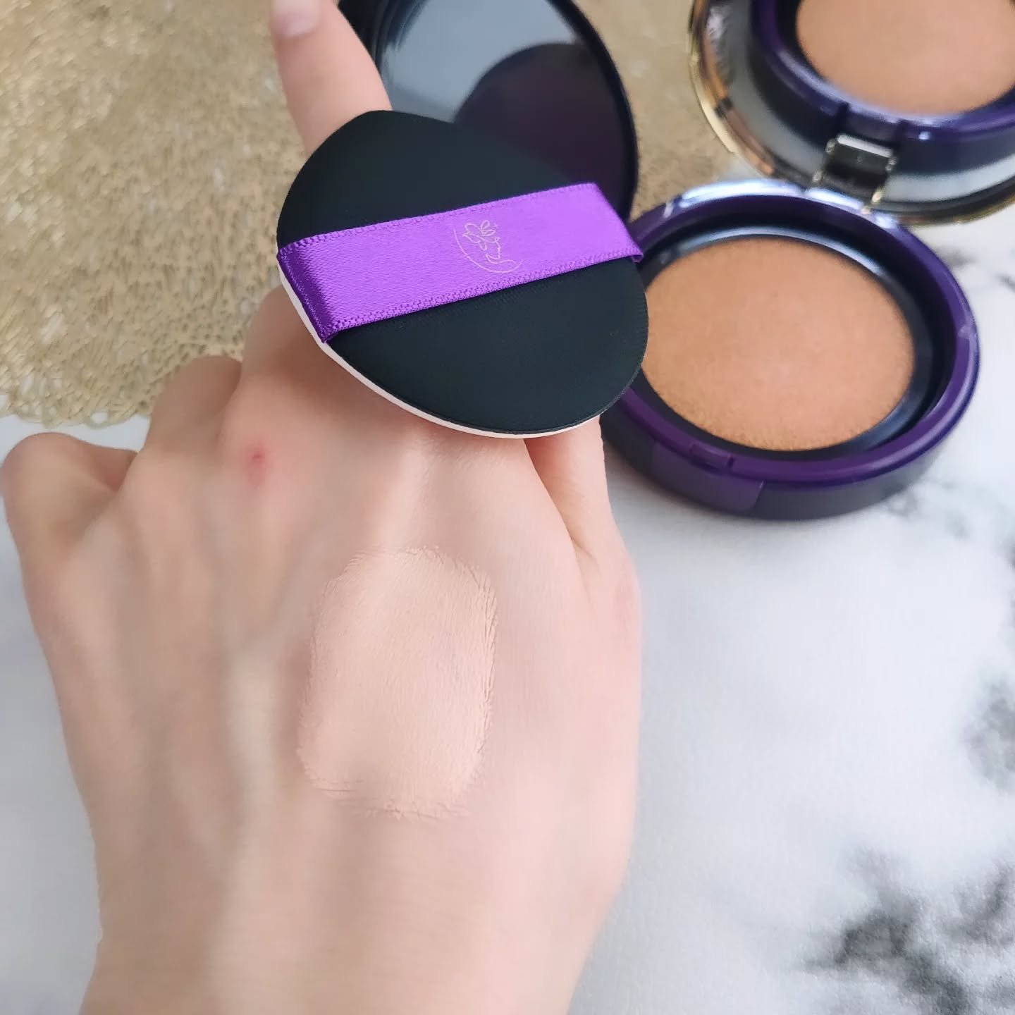 肌の中から密着して積み重ねる、72時間オーラブライトニングクッション。 しっとりしながらも明るく輝くお肌の表現が出来るんだそう。 TIRTIRのクッションファンデはどれも容器のカラーリングが目を引きます。 今回のオーラクッションは近未来的なシルバーカラー。 TIRTIRらしい楕円のクッション容器となっており、蓋を開けると大きなミラーも付いています。 ファンデは潤い感があり、すっとお肌に馴染みこみます。 厚塗り感がなく、良い感じの大人垢抜けメイクに仕上がります。 時間が経ったりマスクの着脱をしてもヨレにくく、 ふとした時にマスクを外しても恥ずかしくありません♪ この使い心地の軽やかさとベースメイクの美しさとの両立は、 やはりTIRTIRコスメは優秀だなぁと実感します。
