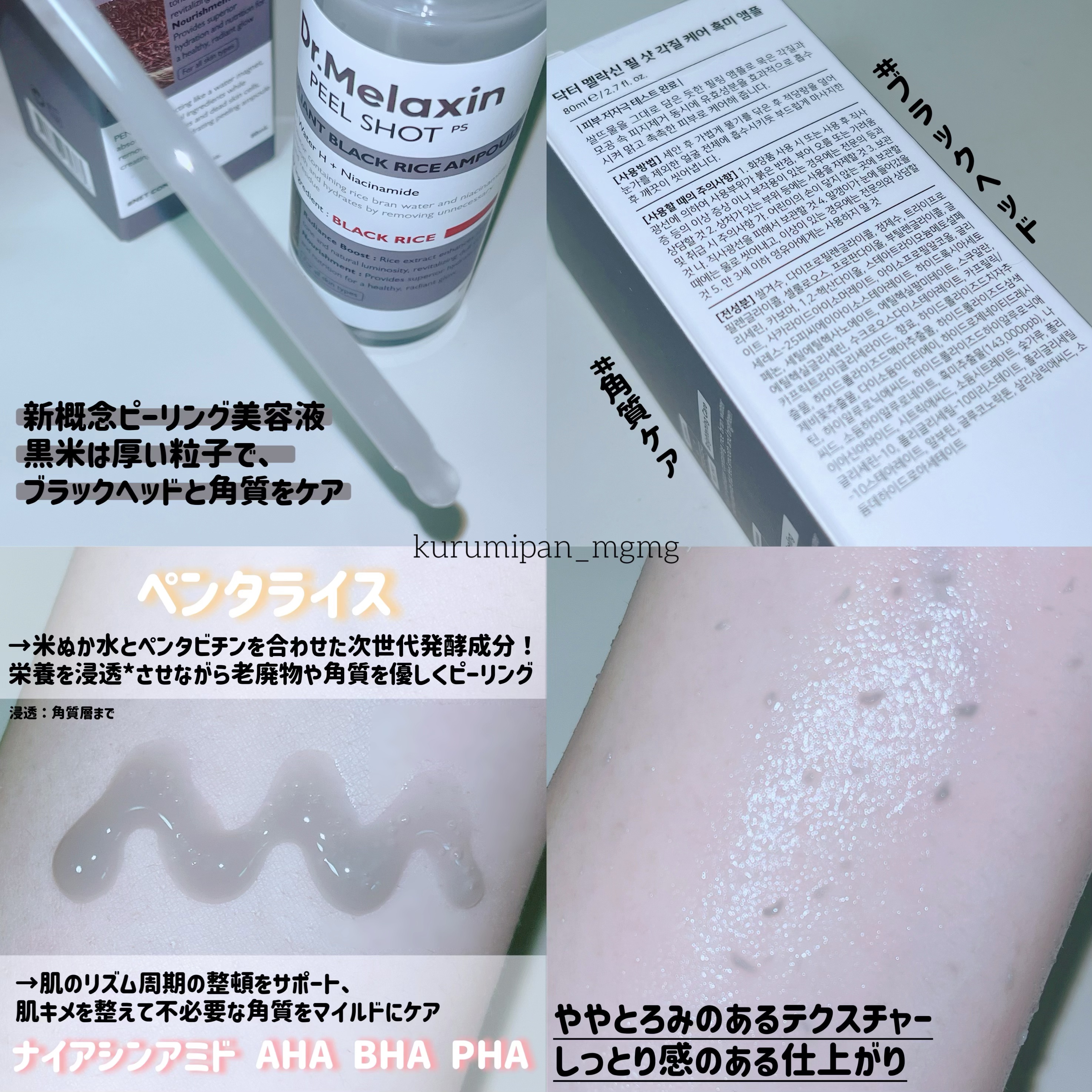 \お米のようなつるもち肌/Dr.Melaxin黒米ピールショットゴマージュアンプル白米ピールショットゴマージュアンプルお肌に栄養を届けると同時に老廃物や角質をピーリングするDr.Melaxinのピールショットゴマージュアンプル。美容成分が一番...