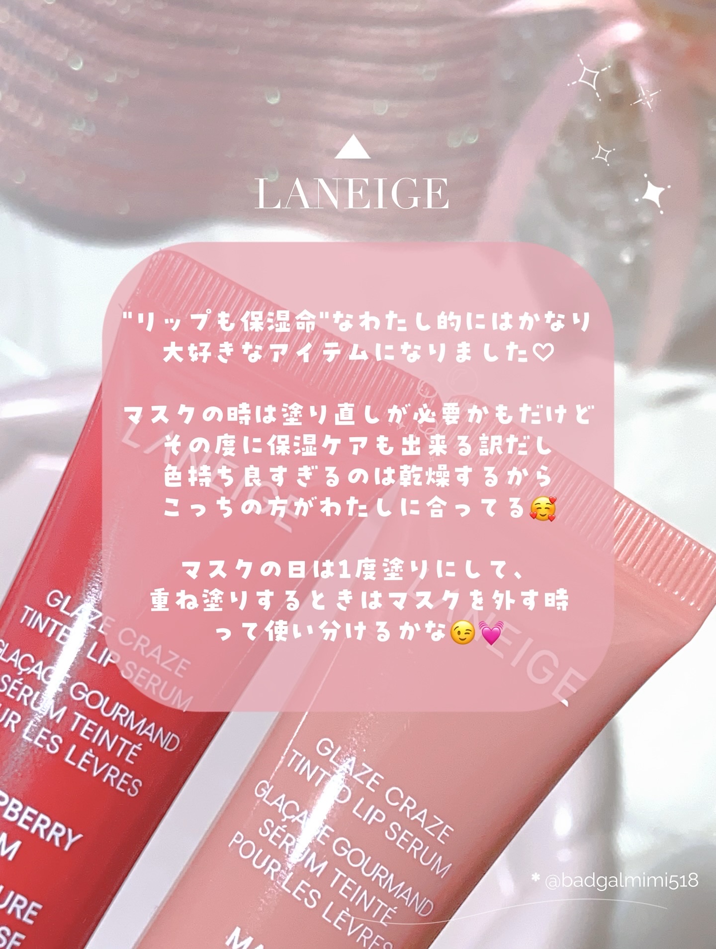 ✿LANEIGE✿グレイズティントリップセラム(ラズベリージャム/メープルグレイズ)@laneige_jp※整肌成分「ダロイズポリペプチド※ザク口種子油」と※保湿成分「セラミドNP※ポリグルタミン酸」などの95%スキンケア成分配合したリップセ...