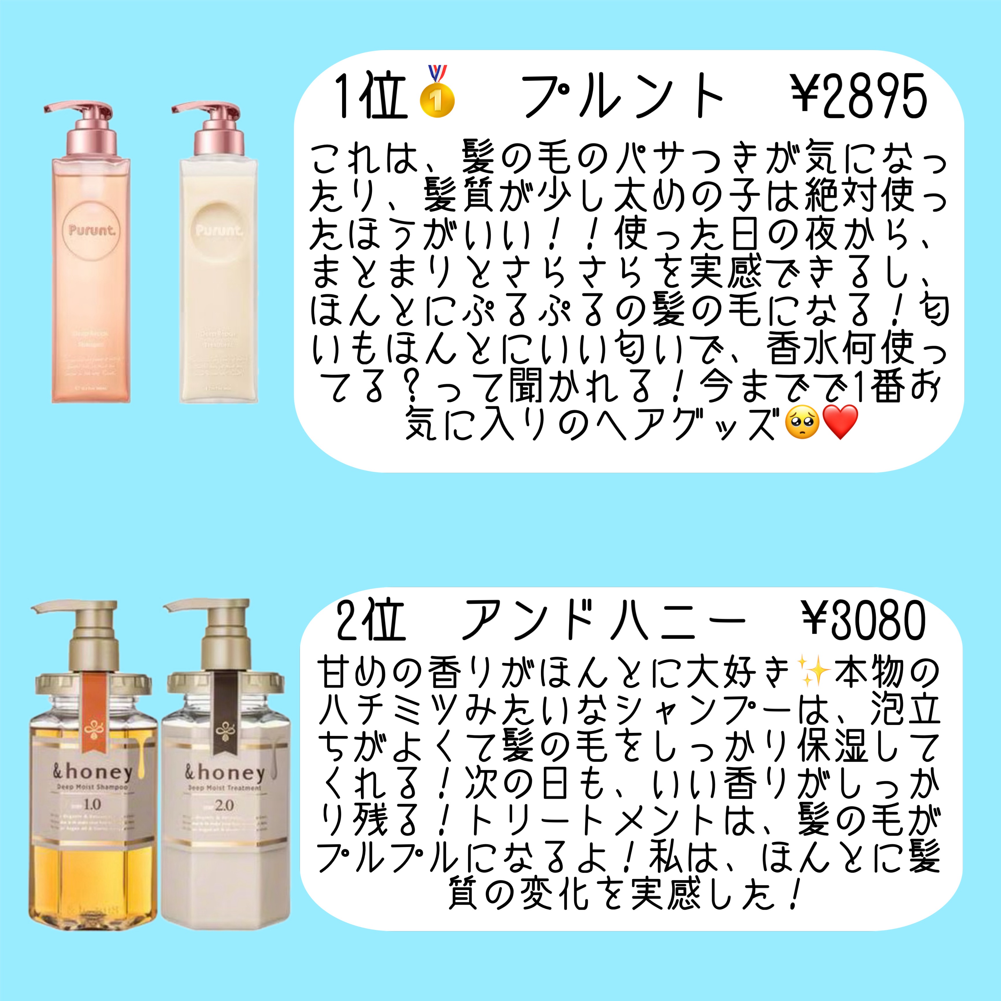 《辛口》シャンプー・トリートメントおすすめランキング!ぜひ参考にしてください!!#シャンプー#トリートメント#ヘアケア#プルント#アンドハニー...