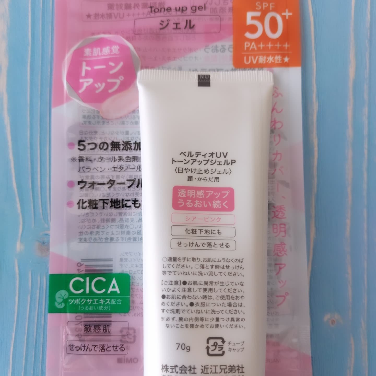 サンプル百貨店@3ple_dept様のモニターキャンペーンよりいただきました🍀ベルディオ UVトーンアップジェルシアーピンク 70g@omi_menturmSPF50+PA++++ UV耐水性ジェルタイプのトーンアップUV素肌にとけこむ透け感...