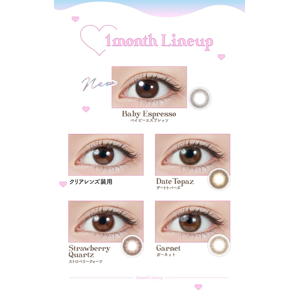 - ※2025年6月以降、商品パッケージ裏面・側面の一部表記を順次変更いたします。尚、これにかかる商品の交換・返品は承っておりません。 『TOPARDS(トパーズ)』は、透明感とうるおいのある瞳にこだわって開発されたカラーコンタクトレンズブランドです。 うるうる・キラキラした瞳に映り、どんなシーンにも馴染んでくれる商品となっております。 Date Topaz(デートトパーズ) DIA:14.2mm/着色直径13.4mm 着けてるとバレにくくこっそり可愛いが仕込めるふんわりデザイン。 Strawberry Quartz(ストロベリークォーツ) DIA:14.2mm/着色直径13.5mm ブラウンカラーにピンクをほんのりプラス。 着けることで一気に甘い顔にみせるレンズ。 Garnet(ガーネット) DIA:14.2mm/着色直径13.5mm ハイライトカラーが、ヘルシーな血色感と輝きをプラス。 洒落感ライトブラウン。 Cream Rose(クリームローズ) DIA14.2mm/着色直径13.4mm まろやかピンクが上品かわいいちゅるんローズブラウン。 Mocha Ring(モカリング) /DIA14.5mm/着色直径13.7mm くりっとフチで甘さたっぷりの瞳♡愛されモカブラウン。 Jelly Quartz(ゼリークォーツ) /DIA14.2mm/着色直径13.6mm ぼかし細フチでぷるんと輝く瞳に、毎日使いたくなる引き算大人盛れレンズ。 カラーコンタクトレンズの不適正使用による眼障害の危険性等などがあります。 ●コンタクトレンズは高度管理医療機器です。不十分な洗浄・消毒など不適切なケアや、長時間・交換期間を超えた装用により、アレルギー性結膜炎、角膜感染症、角膜潰瘍等の重篤な眼障害が発生する危険性があります ●ご使用前に取扱説明書を確認してください 使用上の留意事項 ●眼科医院等を受診してからお求めください ●眼に異常を感じたら直ちにレンズ使用を中止し、お近くの眼科等で診察を受けてください ●医師の指示にしたがってご使用ください ●コンタクトレンズを装用する場合、自覚症状がなくても、眼科医院等での定期検査を受けてください ●レンズに不具合がある場合は使用しないでください