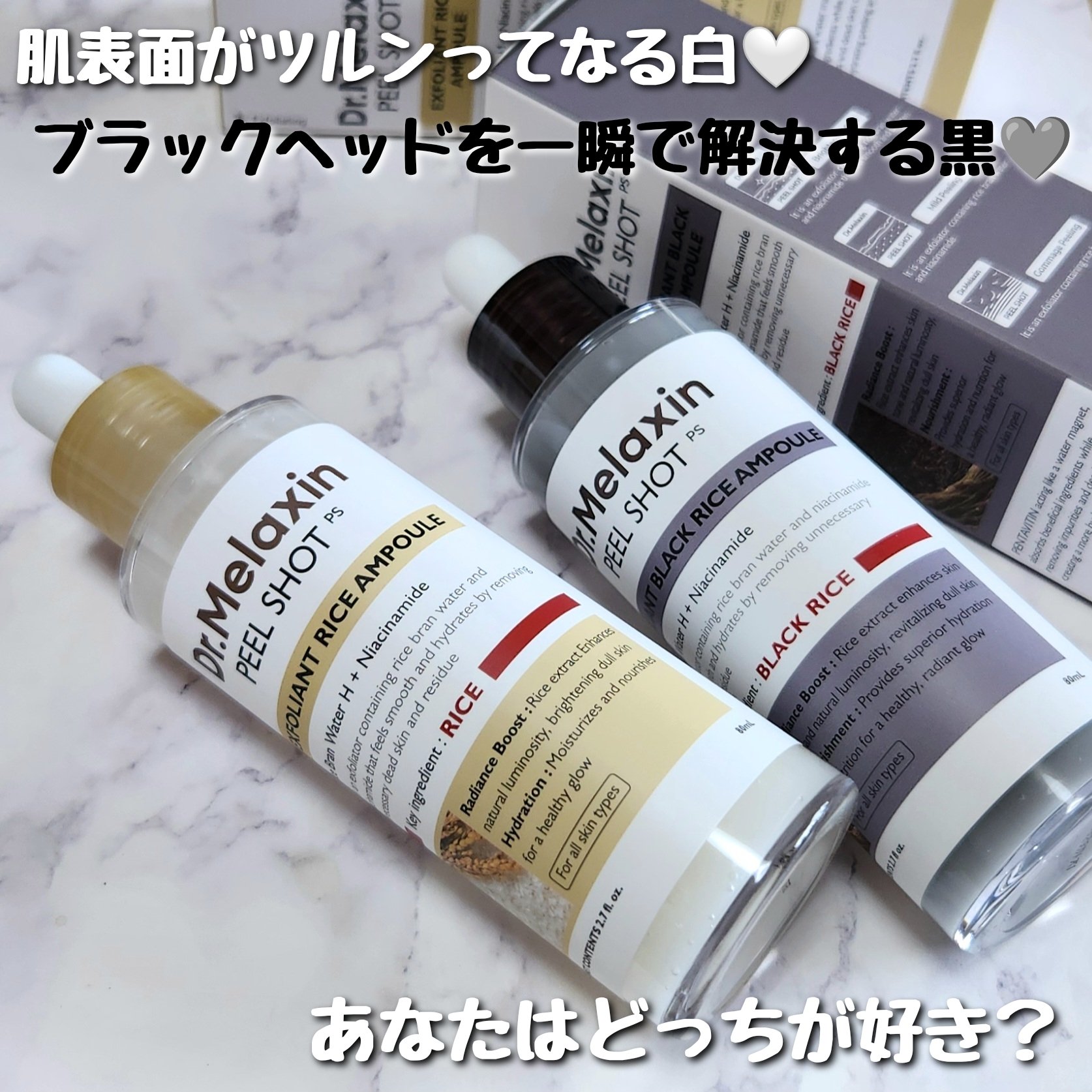 #PRDr.Melaxin白米ピールショットアンプル黒米ピールショットアンプルお米の力で優しくピーリング🌾ピーリングとアンプルを一気に!美容成分の浸透力を高める成分「ペンタライス」と「ナイアシンアミド」を配合し角質ケア後ツヤを与え明るい肌へ✨...