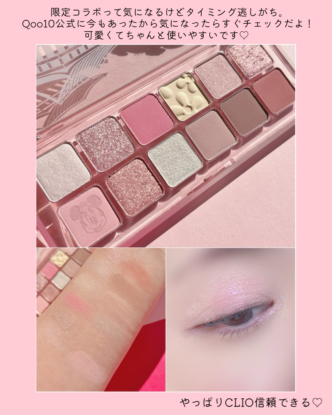 メガポおすすめ!CLIOのアイシャドウはまじで優秀だから使って欲しい!!!とりあえず、ディズニーコラボは可愛すぎね💓💓プロアイパレットエアーは104と106を買ったよ〜。ラメも色もドンピシャで可愛くて、春っぽい明るい感じも好き🙌🏻☘️ミニーち...