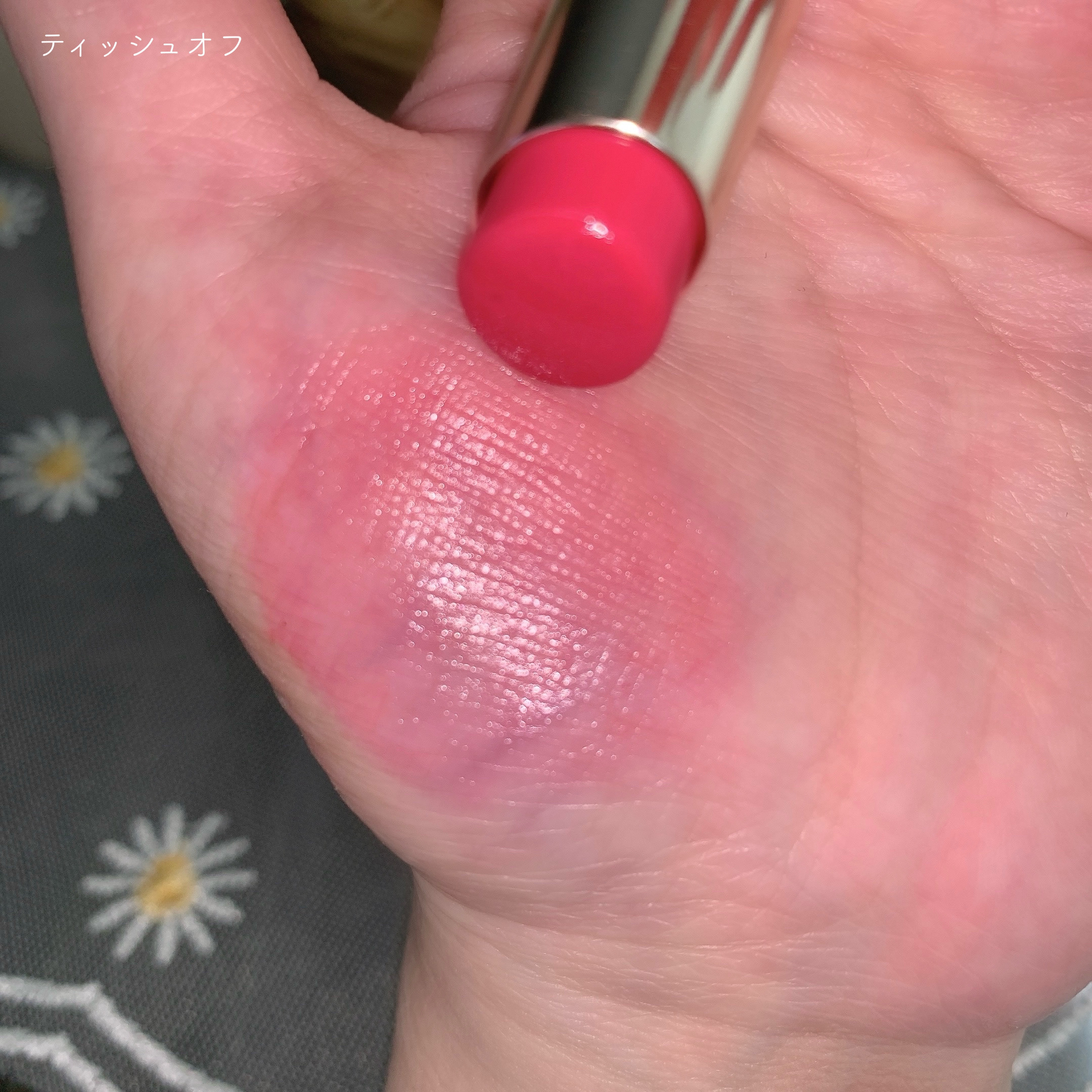 多幸感あふれるクリアなコーラル🩷 特に時間が経つと蛍光感がでてきちゃう。 THEピンクのリップを求めている人にピッタリ! ティッシュオフしても若干色は残ってる! おすすめの塗り方は、いつもよりも少し濃いめに塗ってから、ティッシュオフ!