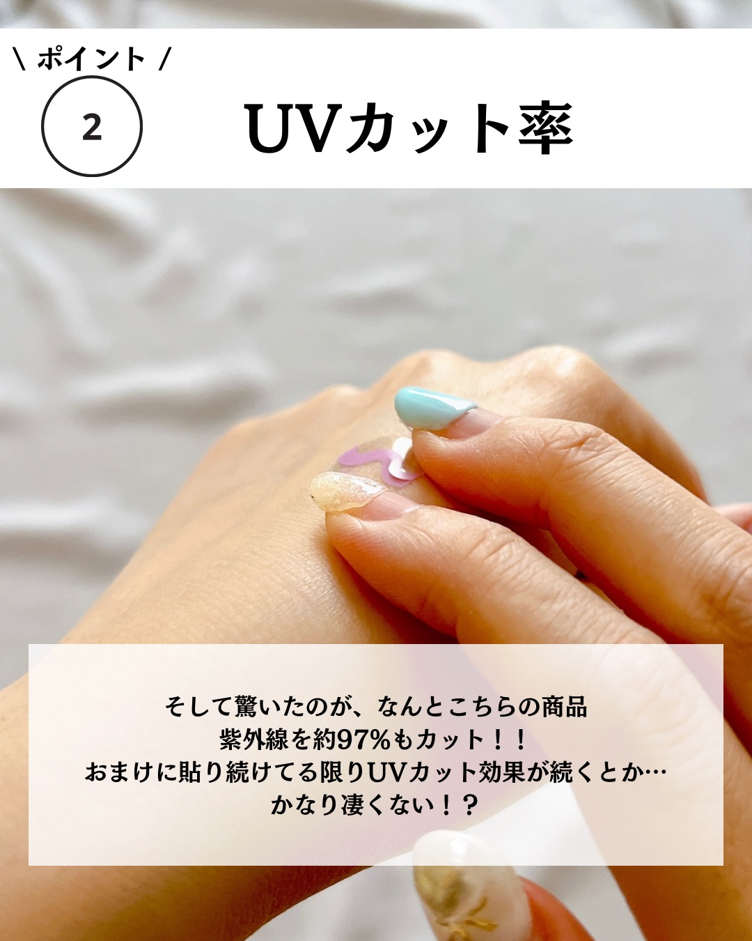 薄くて紫外線カット効果が高い Filmor(フィルモア)のパッチ😳 紫外線を約97%カットしてくれるみたい! 実際貼ってみると薄くて軽くてかなり使い心地がいい!透明で目立ちにくいしバレにくいと思う! 紫外線による色素沈着を防いでくれたりニキビ跡・シミ・キズあとが気になる人におすすめ!