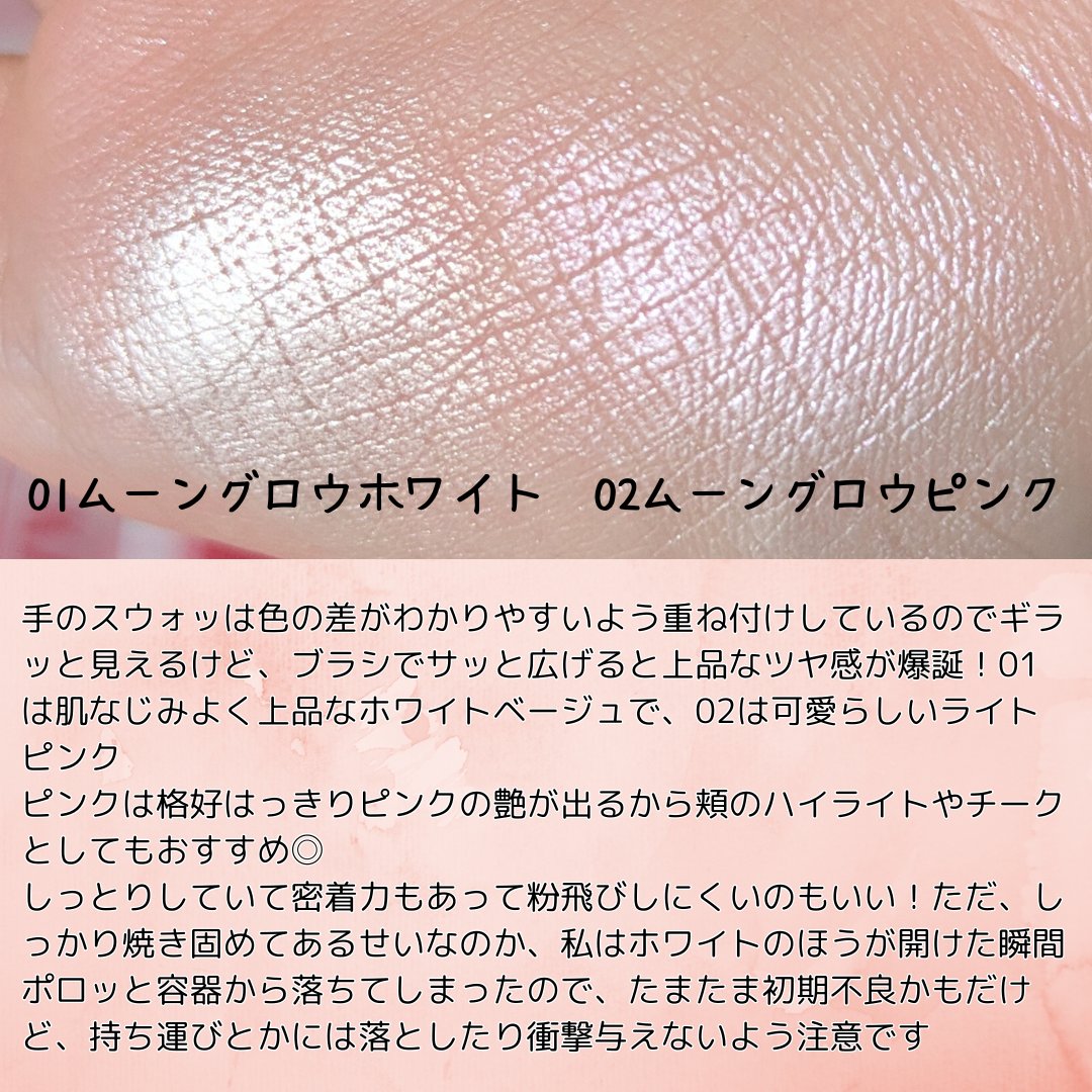 - 月光のような上品つやで立体感🌕 ベイクド製法のハイライター✨ パールを潰さずに焼き固める事で、 パールの輝きを活かせるベイクド製法を採用。 繊細パールを高配合。面で光り輝いているような仕上がりに。 上品な華やかさと自然な立体感を演出します。