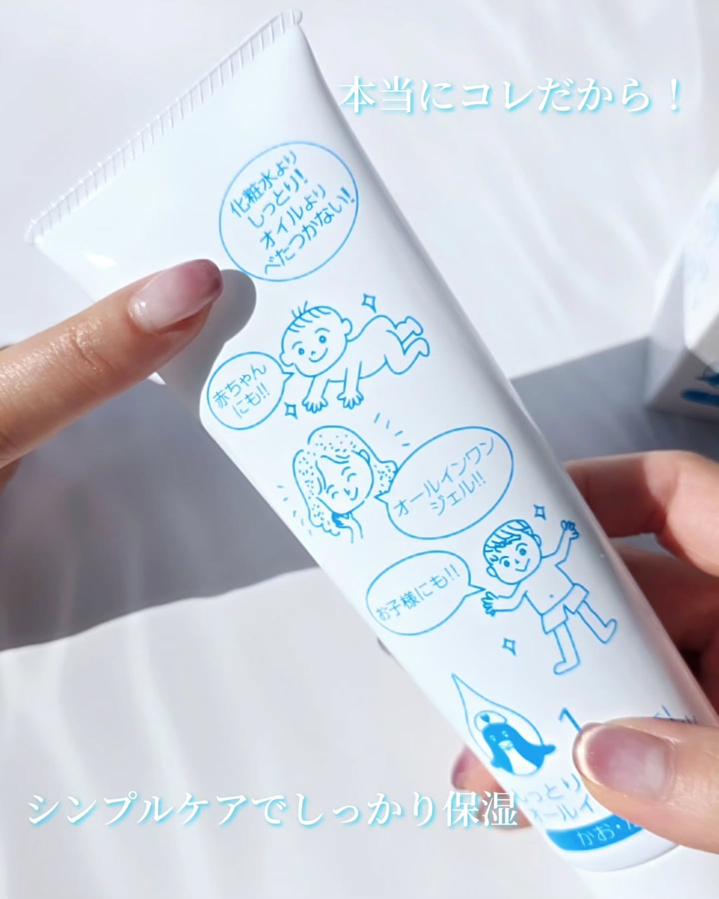 乾燥肌の方、乾燥肌なのにニキビや吹き出物が繰り返し出てしまう方、妊婦や授乳中の女性にもお使いいただけるオールインワンのお手軽スキンケア商品です💖 高品質のパーフェクタワセリンを使用しているんだそう、無香料、そして余分な美容成分や植物成分などは含みません! 家族みんなの毎日のスキンケアにピッタリ!オールインワンとしてお顔のスキンケアはもちろん、赤ちゃんのベビークリームとして、子供の全身の保湿ケアとして、またパパのひげそりあとやハンドクリーム、さらにはかさつく髪のヘアークリームとしても使えるとても便利なジェルなんです。