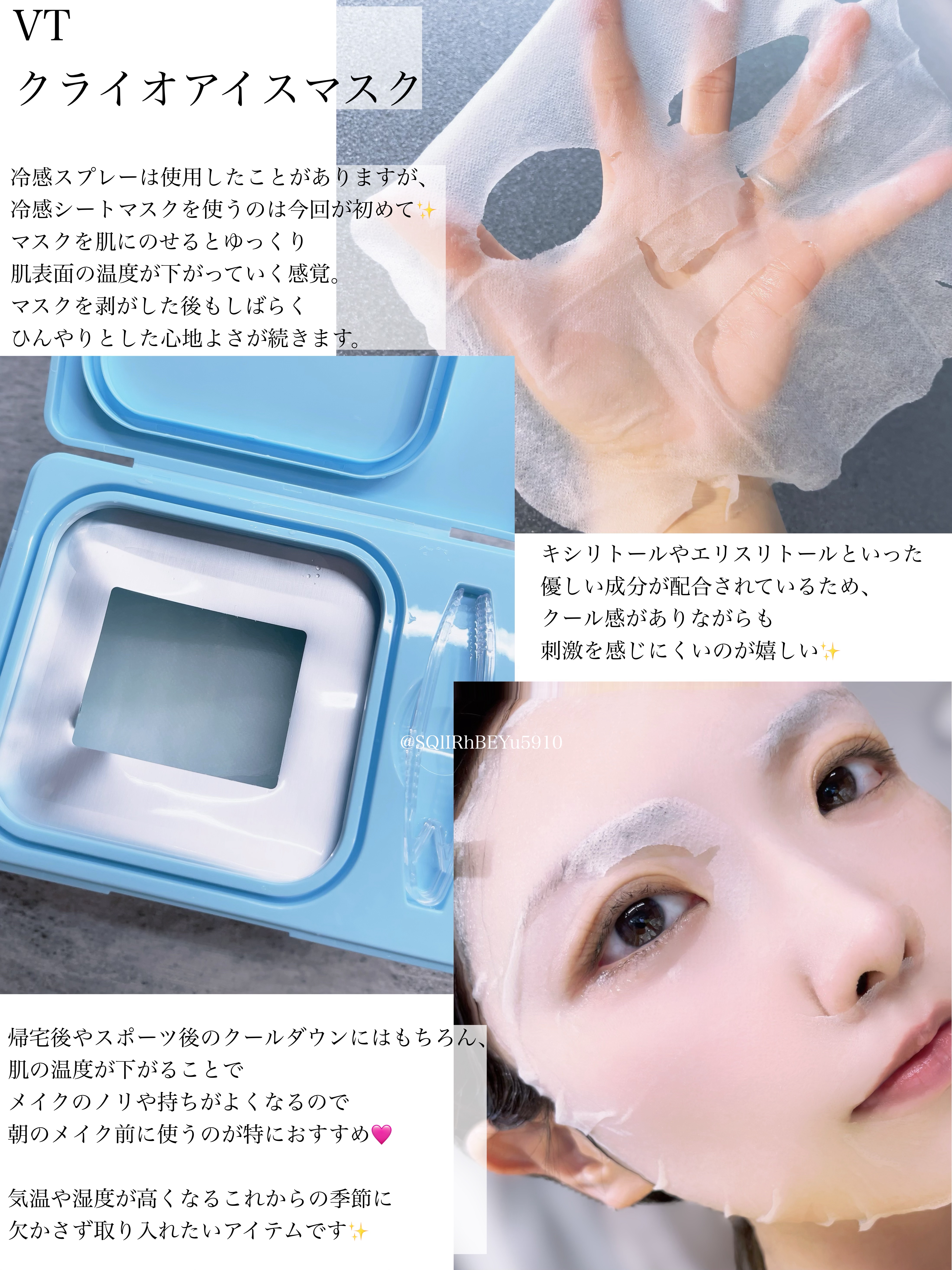 #PR#VT公式アンバサダー\VTの新作アイスマスク🧊/#クライオアイスマスク冷感が心地よい美白ケアの氷河水&グルタチオン配合、極薄シート‼️火照った時や夏に活躍する冷感マスクで食品にも使われるキシリトール等も配合されてるからクーリング効果ば...