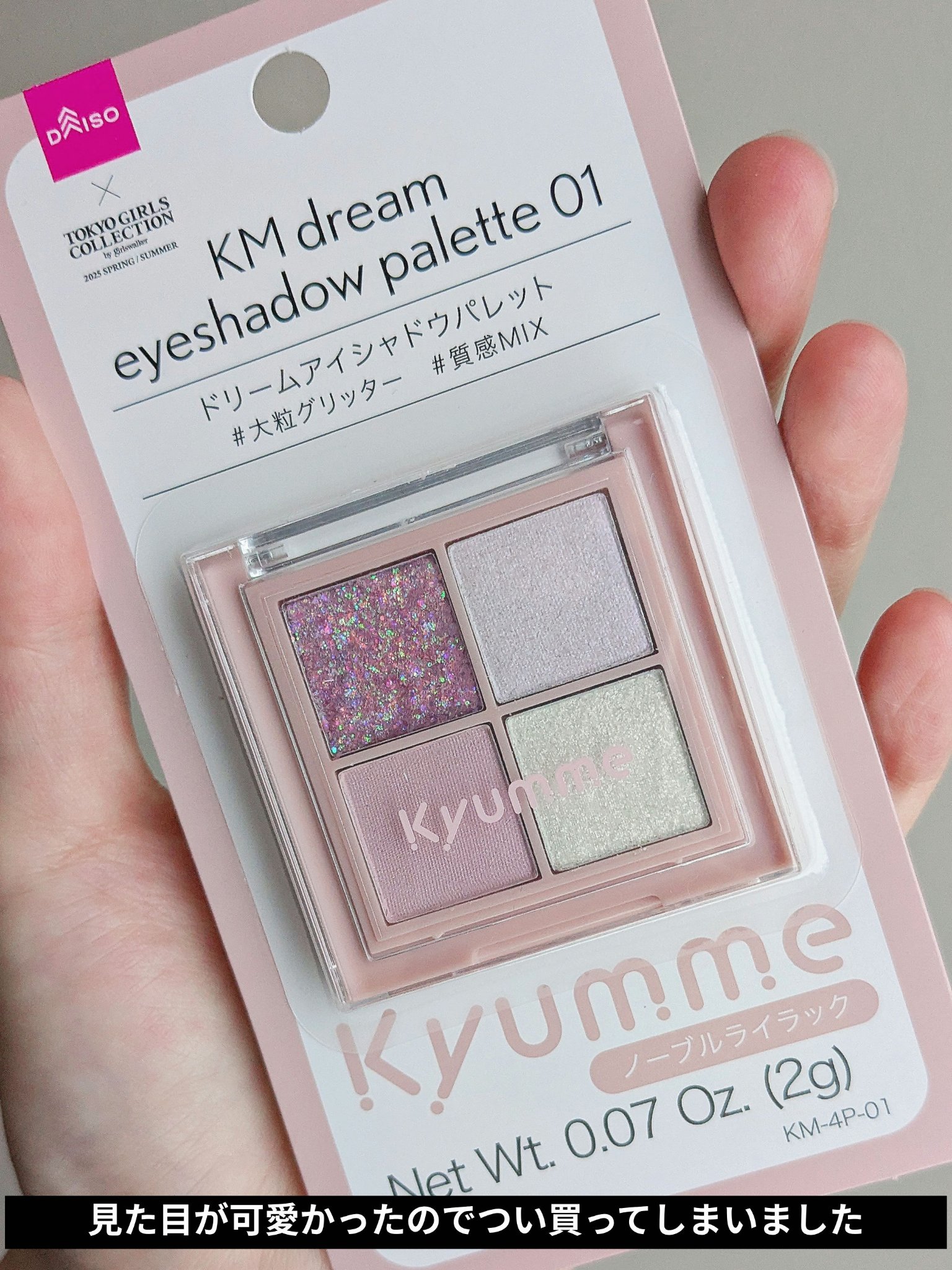 DAISOkyummeドリームアイシャドウパレット01ノーブルライラックグリッター、パール、マットをコンパクトにまとめた使いやすいパレット。様々な組み合わせで自由なアレンジが楽しめます。kyummeの中で1番目を惹かれたアイシャドウパレット。...
