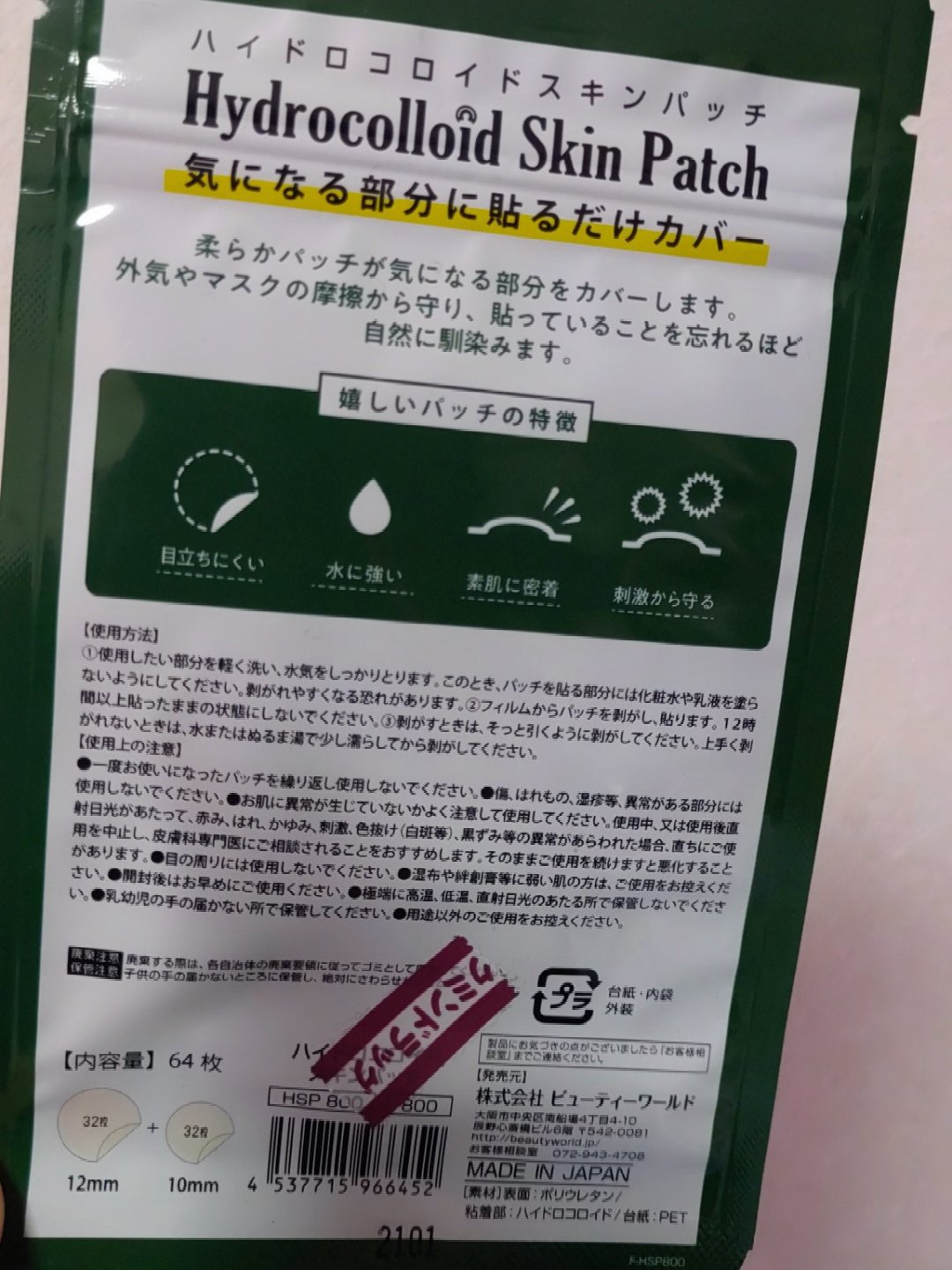 商品詳細情報ビューティーワールド ハイドロコロイドスキンパッチ