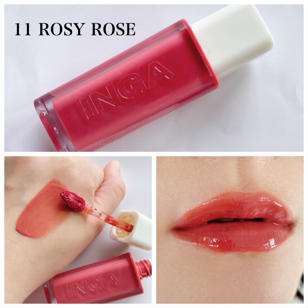 INGAインガWATERGLOWLIPTINTROSYROSEティント仕様で色残りも🙆♀️⭕️カラーも豊富だよ☺️❤️つやつやでティントだけど私は荒れなかったよ🙋♀️食べたりするとツヤはなくなっちゃうけど😅色味は意外と残る...