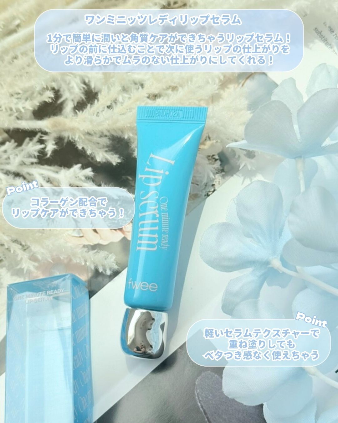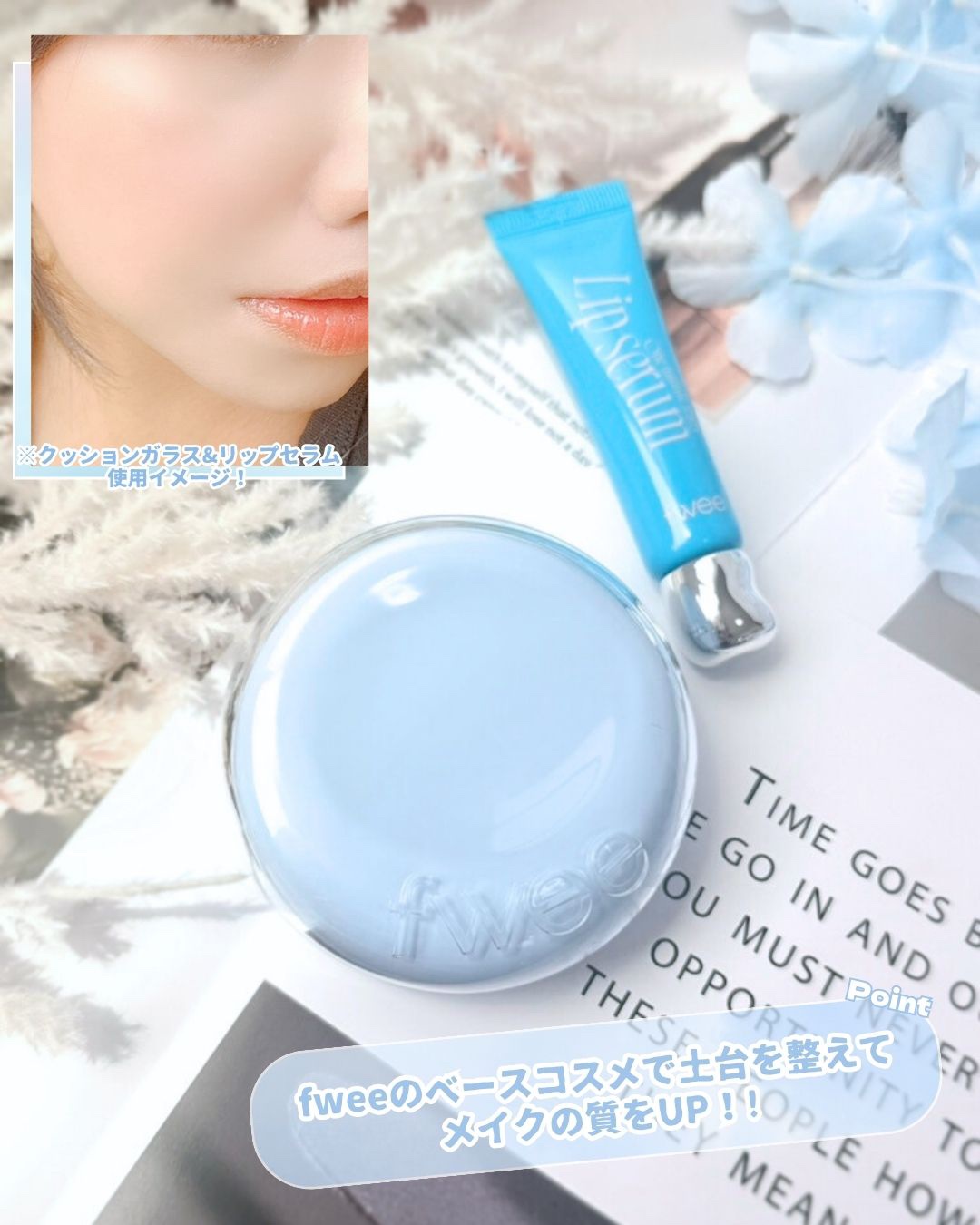 fweeのベースメイク✍🏻格上げアイテムツヤクッション&リップセラム🩵🫧✦fweeクッションガラスナチュラルワンミニッツレディリップセラム水色パケが可愛いfweeのクッションファンデはツヤ肌仕上がりが綺麗!SPF50+PA+++だから紫外線対...
