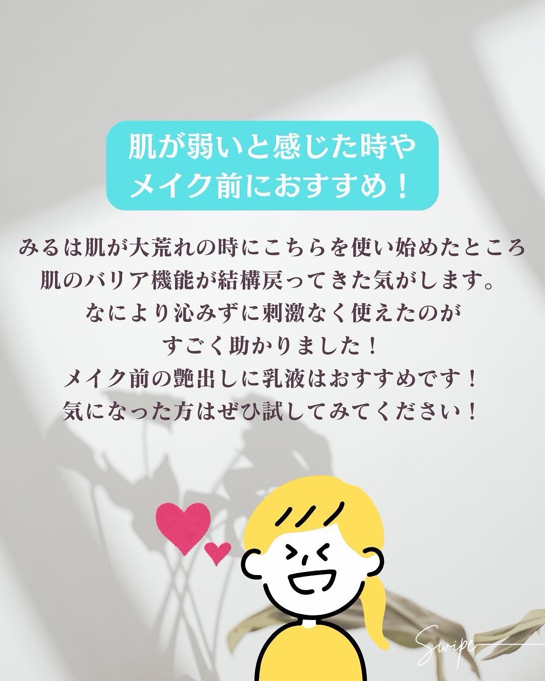 | スキンケアランキング第70位 | 乳液なのにシャバシャバで緩めのテクスチャーだから少量でめっちゃのびる。 うるおうのにべたつかないしメイク前も使いやすい◎ | 詳細を見る | |