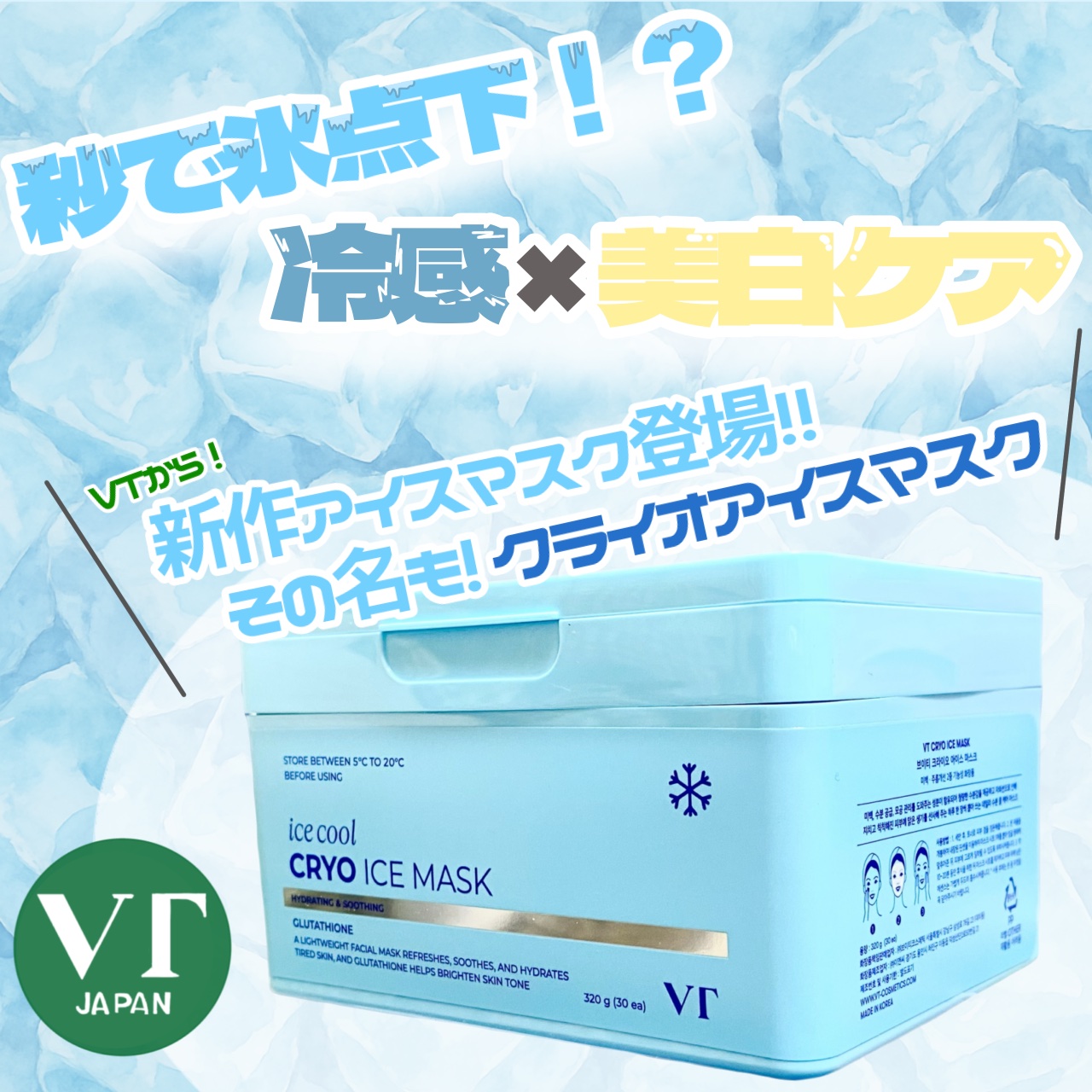 - べたつきが気になる暑い季節にぴったりな、ひんやり使用感あふれる30枚入り大容量マスクパックがVTから新登場! 氷河水*1やキシリトール1*配合で、肌にひんやり感を与えてリフレッシュ。 さらにグルタチオン*2・ナイアシンアミド*2配合で、夏の紫外線による乾燥ダメージケアにも! 肌にすばやくひんやり感を与える、夏にピッタリのマスク。 リピーター多数のVT人気「箱型マスク」シリーズから、この夏限定のクライオアイスマスクで“涼しさ感じるスキンケア”を始めましょう。 *1清涼成分 *2整肌成分 ■このような方へおすすめ 乾燥や紫外線などの外部刺激を受けた肌 紫外線、気温の高さにより乾燥した肌 夏シーズンの乾燥でくすんだ肌ケアが必要な方 暑い夏涼しくスキンケアをしたい方