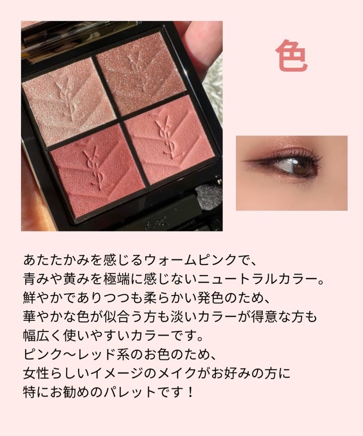 SUQQUシグニチャーカラーアイズ04純撫子今回は大好きな純撫子のご紹介をしたくて投稿させて頂きました!SUQQU公式オンラインショップの写真だと少しスプリングとサマー寄りのピンクっぽく見えるんですが実際の色はイエベさんにとってもおすすめのあ...