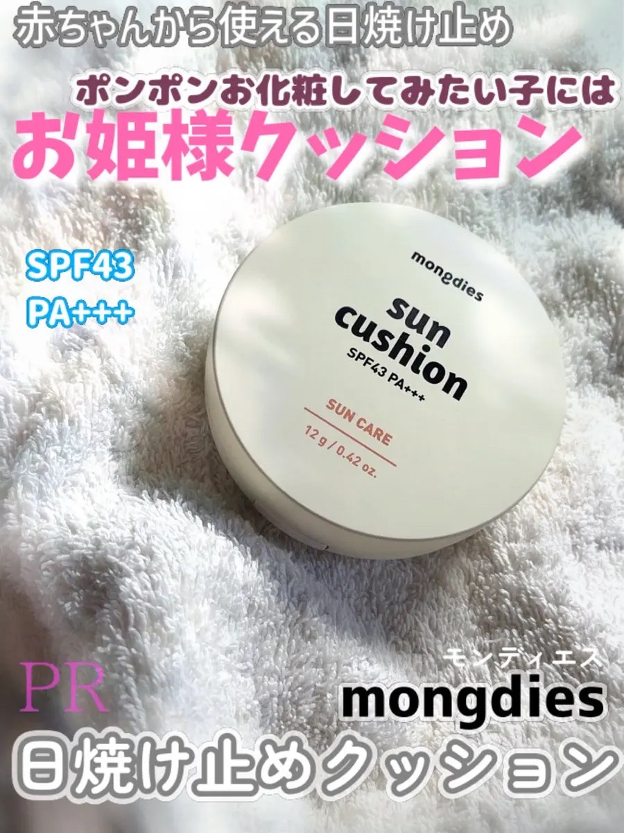 \ぽんぽんお姫様クッション♡/これひとつで簡単にUVケアok♡☀✨■mongdies韓国で連続6年評判1位獲得ブランド🥇日焼け止めクッションSPF43PA+++¥2,400✓EWGグリーン等級の優しい成分:赤ちゃんから大人まで使える:赤ちゃん...