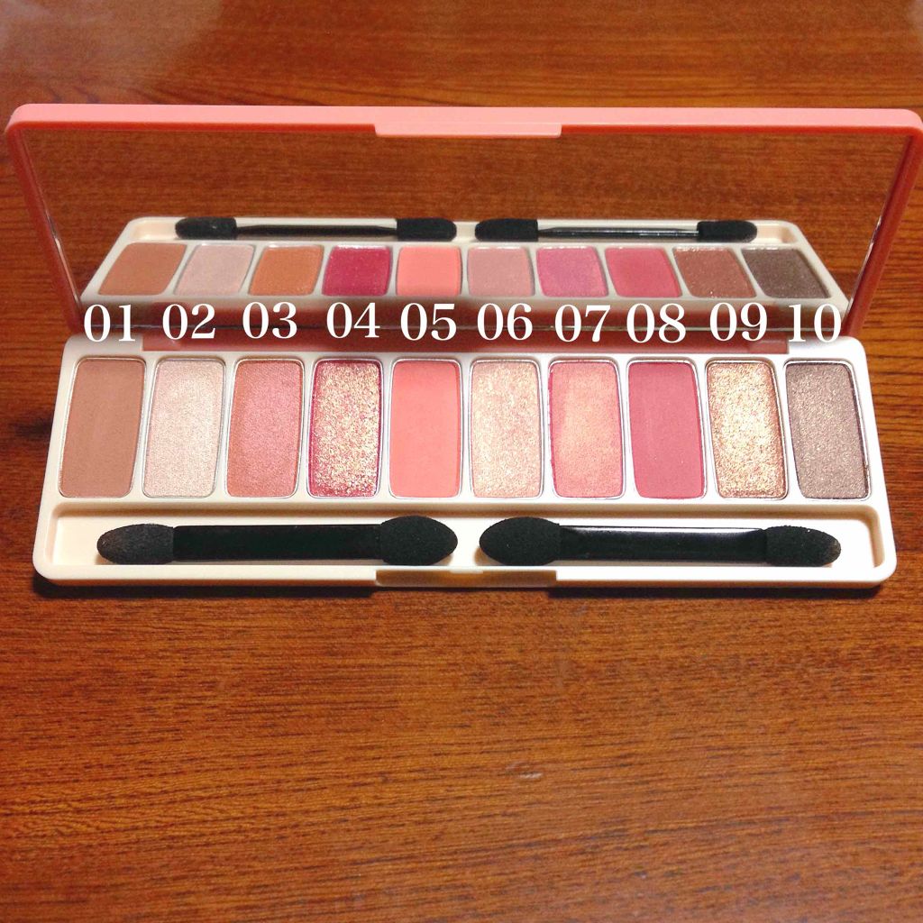 - 肌なじみの良い、鮮やかな発色で目元を華やかに彩る捨て色なしの10色アイシャドウパレット 異なる3種のテクスチャーを自由に組み合わせて、グラデーションも思いのままに。 NEW 2023.4 ・肌トーンにあう配色を詰め込んだトレンドカラー 肌トーンに合わせて、自分に似合うトレンドカラーが楽しめる♡ パーソナルカラー×トレンドカラーの掛け合わせパレットで、デイリーメイクもスペシャルメイクも気分にあわせてなりたい自分に! ・むにゅっとジェル質感ラメで高密着、煌めく目元 パレットの中でもポイントとなる大きめ粒子のラメは、ジェルのような新質感で落ちにくく肌にぴったりと密着します。キラキラとした目元をキープします。 ・使うカラーは大きめに!リアル捨て色なしパレット ベースやラメのよく使うカラーと締め色や濃い色等の減りが少ないカラーを異なるサイズで詰め込んだ、リアル捨て色なしパレット! <使用方法> 付属のデュアルシャドウブラシでベースカラーをまぶた全体に塗り広げます。細いブラシでグラデーションや目尻、アイライン、涙袋などのポイントカラーをのせて仕上げます。