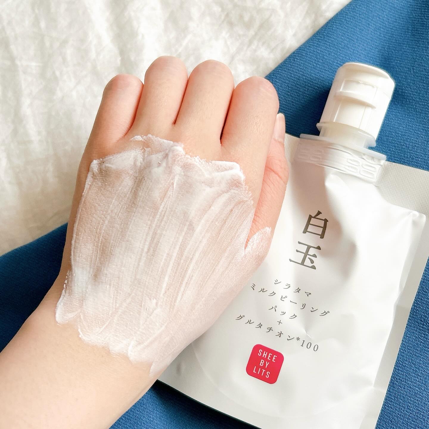 SHEEBYLITS白玉ミルクピーリングパック塗って流すタイプのピーリングパックグルタチオン※1とビタミンC誘導体※2をW配合が嬉しいです!クリーミーなテクスチャーで塗りやすく、流しやすい!くすみが飛んで明るくなったような気がします!※1整肌...