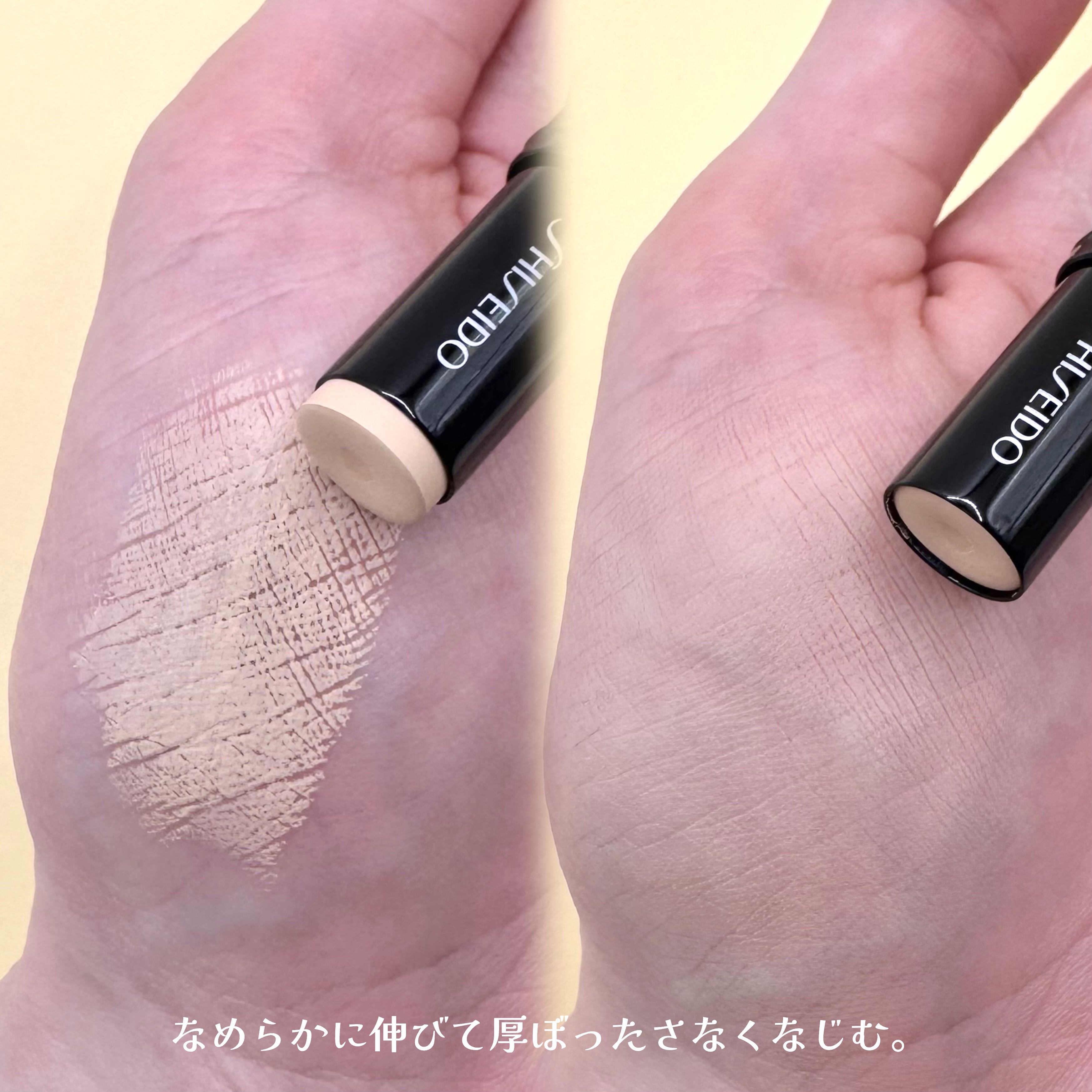 光の反射でシミ・毛穴・小じわをとばし、素肌感とカバー力を両立。スキンケア成分73%配合し、みずみずしい潤いと透明感を叶えます🪄︎︎ みずみずしく軽いつけ心地。毛穴や色ムラなどを光で飛ばしてぼかしてくれるような、素肌感を残した仕上がりです。 長時間つけていても肌が疲れてくる感じもありませんでした。03790は明るめのニュートラルカラー。