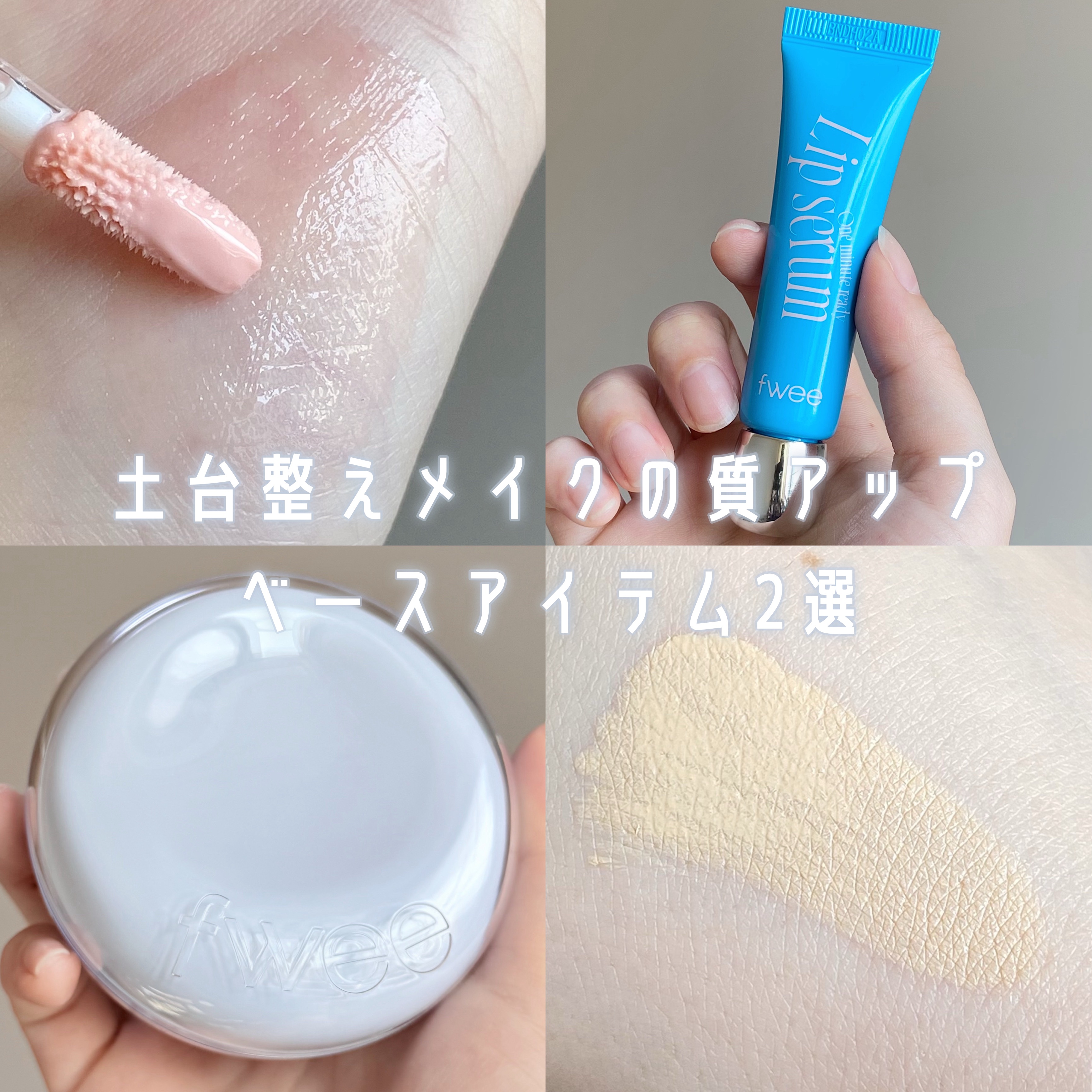 fweeのベースメイク✍🏻格上げアイテムツヤクッション&リップセラム🩵🫧✦fweeクッションガラスナチュラルワンミニッツレディリップセラム水色パケが可愛いfweeのクッションファンデはツヤ肌仕上がりが綺麗!SPF50+PA+++だから紫外線対...