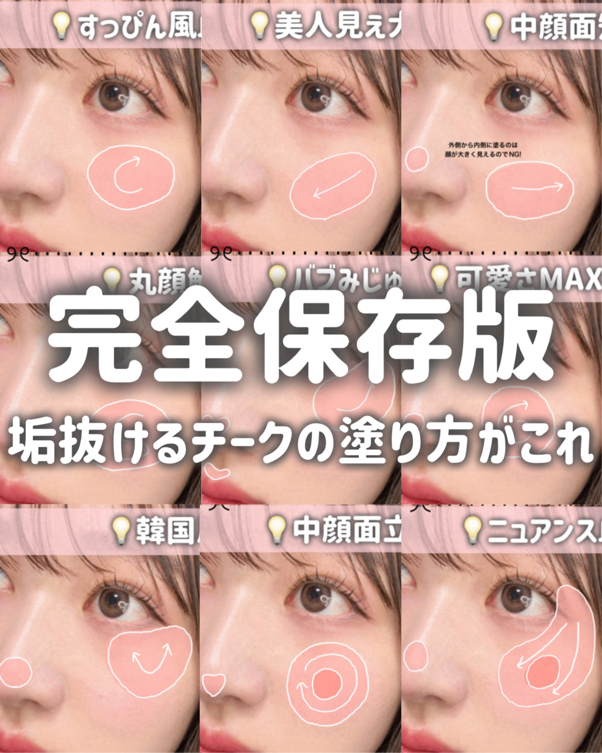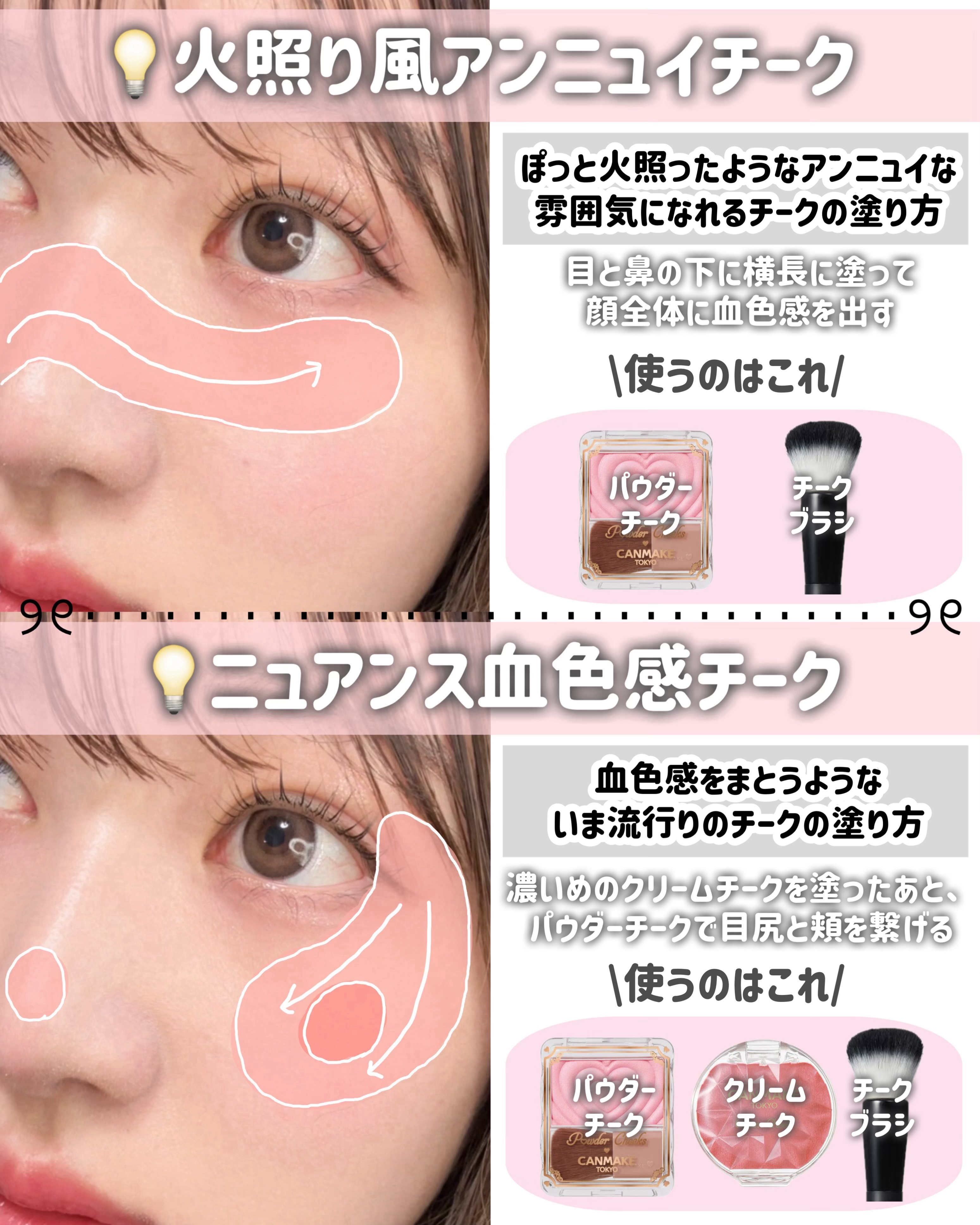 チークの塗り方ってこんなに 種類あったんだ!! 参考になります! チークの塗り方変えるだけで 印象結構変わるよね!!