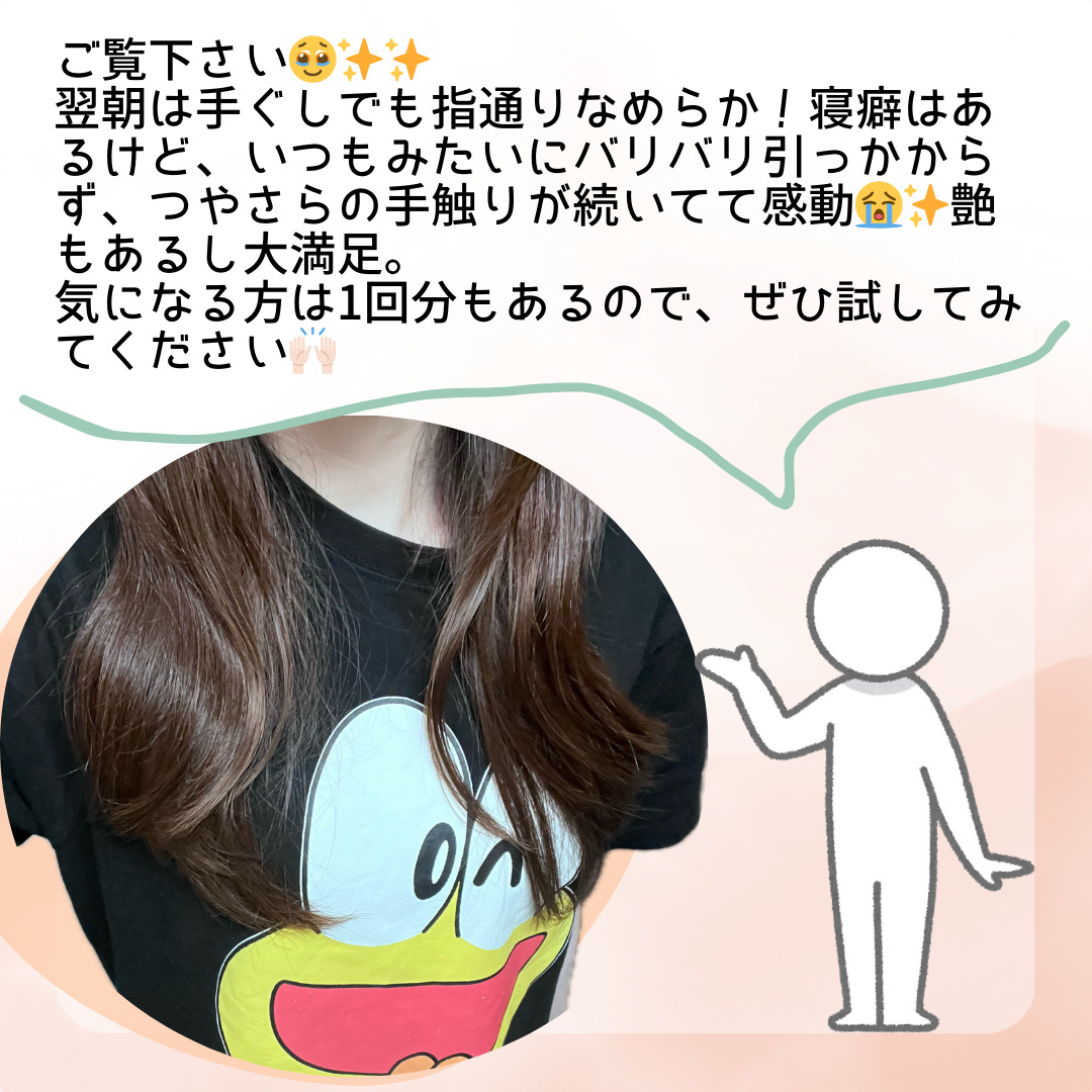 | 全体的な仕上がりは つるんと指通りが良くまとまりも良くて 個人的にはとっても好きな使用感です! | 詳細を見る | ||