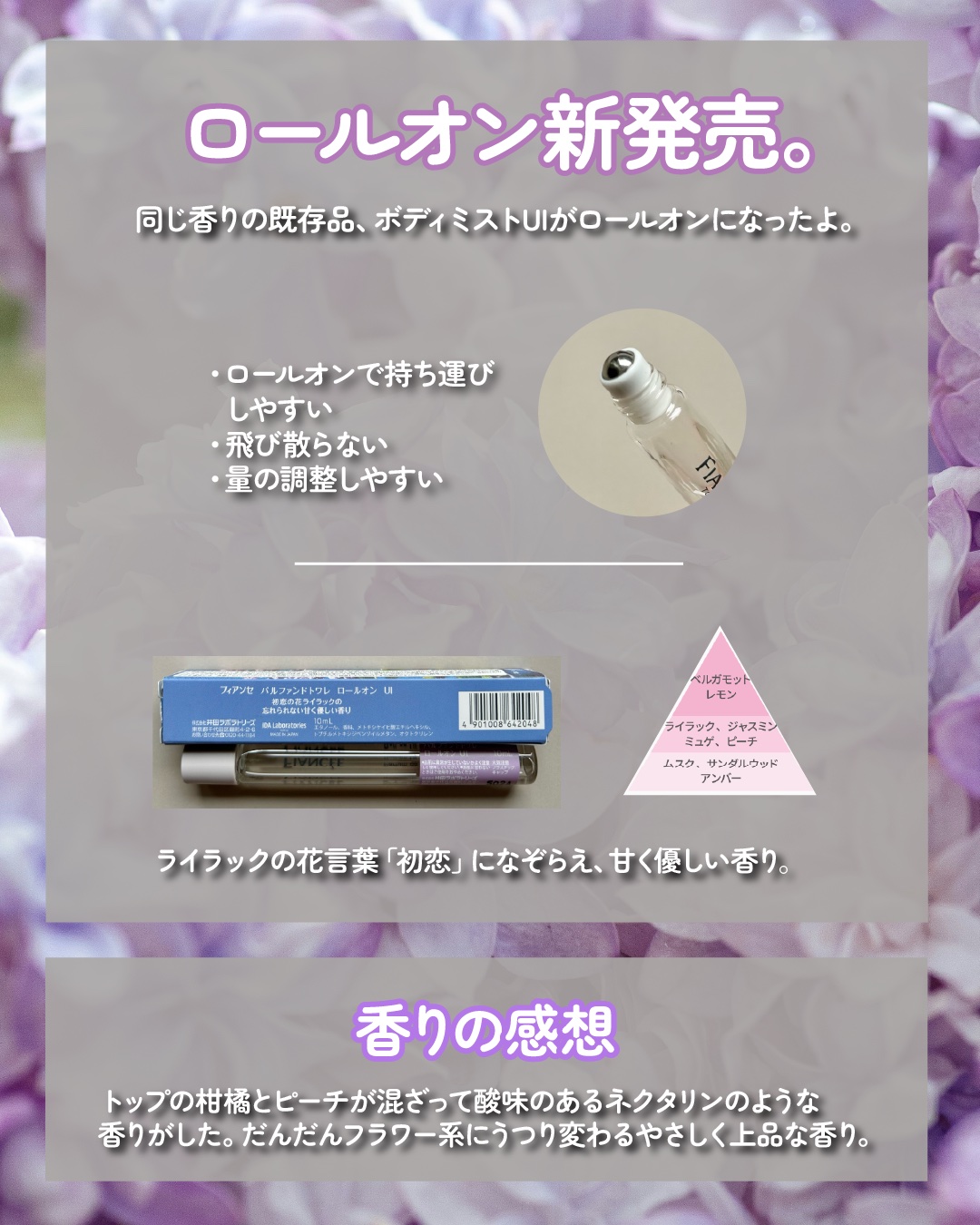 𝐋𝐈𝐏𝐒を通じて『フィアンセ』さまから商品定期をいただきました。🟣FIANCEパルファンドトワレロールオン🟣🟣初恋の香りライラックの忘れられない 🟣🟣甘く優しい香り 🟣ボディミストよりも香りが長く続くパルファンドトワレ。─...