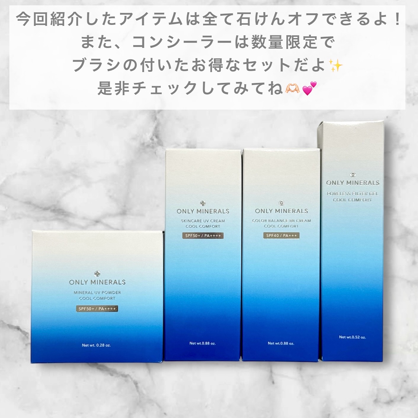 パワーアップして今夏も限定登場!オンリーミネラルの冷感シリーズ!✼••••✼••••✼ONLYMINERALSミネラルUVパウダーSクールコンフォートスキンケアUVクリームNクールコンフォートカラーバランスBBクリームクールコンフォートポアレ...
