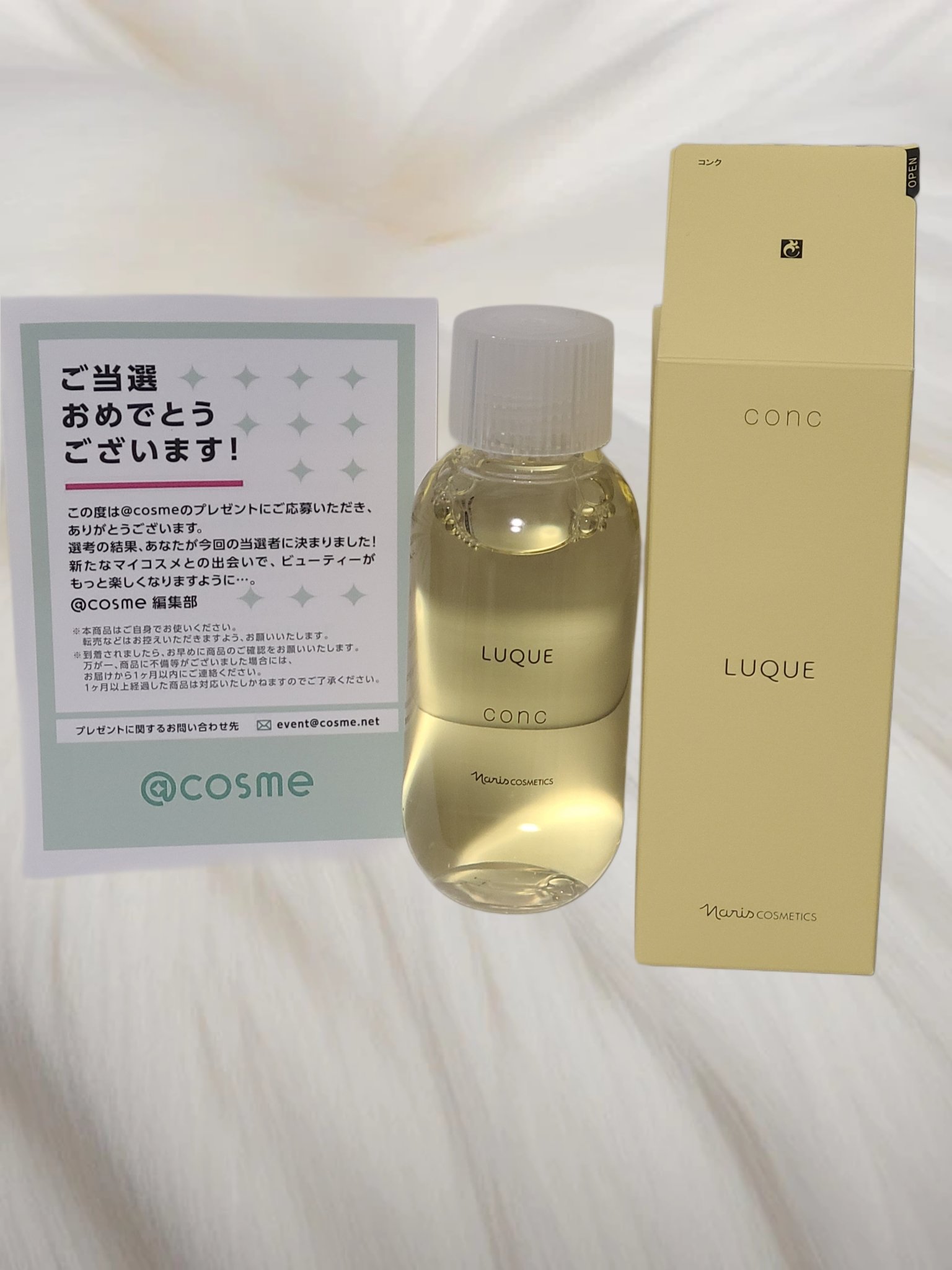 - ■毛穴、ザラつき、くすみ※1が気になる方に、不要な角質をふきとって、つるんとなめからかな肌へ。 ナリスのふきとり化粧水は、5年連続国内売上シェアNO.1※2 肌にとって余分な老化角質をおだやかに取り除き、素肌が持つ本来の美しさを引き出すルクエのコンク(ふきとり用化粧水)はナリスの80年以上続く研究開発によって誕生しました。 ●キレイのこたえは、ふきとり化粧水という選択。 植物保湿成分で古い角質をやさしくオフして、次に使うスキンケアアイテムのなじみをサポート。日々変化する肌をすこやかに整えます。毎日の“ふきとり習慣”で理想の肌に近づきましょう。 ●厳選した3つの植物の力で角層ケアをサポート。 ・柔らかくほぐして、取り除きやすくする「ヨクイニンエキス」※3 ・潤いを与え、健康的な角層へ導く「月見草エキス」※4 ・潤いを逃さず閉じ込める「白花豆エキス」※5 【使用方法】 1. 朝晩2回、洗顔後の後に。 2. コットンに8〜10滴程度(500円玉大)を含ませます。目安は、コットン裏側に染み込む程度。 3. できるだけ力を入れずに、やさしくなでるように顔全体を拭き取ります。 ※1古い角質による ※2ナリス化粧品 2015~2019年度 「ふきとり用化粧水」販売動向調査 TPCマーケティングリサーチ株式会社調べ※3 ハトムギ種子エキス(保湿成分) ※4 メマツヨイグサ種子エキス(保湿成分) ※5ベニバナインゲン種子エキス(保湿成分)