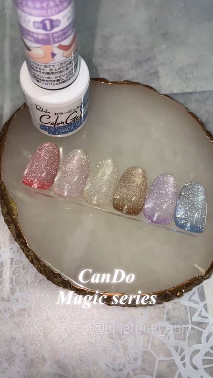 磁石で模様をつくるマグネットジェルだよ😉 色が増えてきたので全色カラーチャート! キャンドゥで1色330円(税込)だよ チェックしてみてね! プレミアムシリーズ、『マグアートジェル🧲』