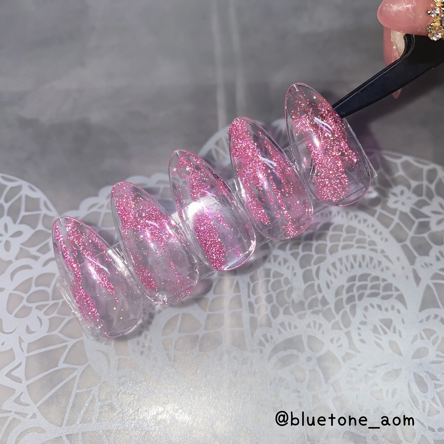 ラメがしっかりしてるし クリアカラーが入ってるから オーロラパウダー無しでも 充分キラキラしました! 反射強めのフィルムなので 実物はもっと うるうるとキラキラが強いです! ビー玉みたい🥺 ネイルシール長持ちさせたいけど ちょっと飽きてきたな〜って時とかに 全然違った印象になるのでオススメです! Seriaのベースジェル 本当にうるうるネイルしやすいので オススメしたい🙆♀️