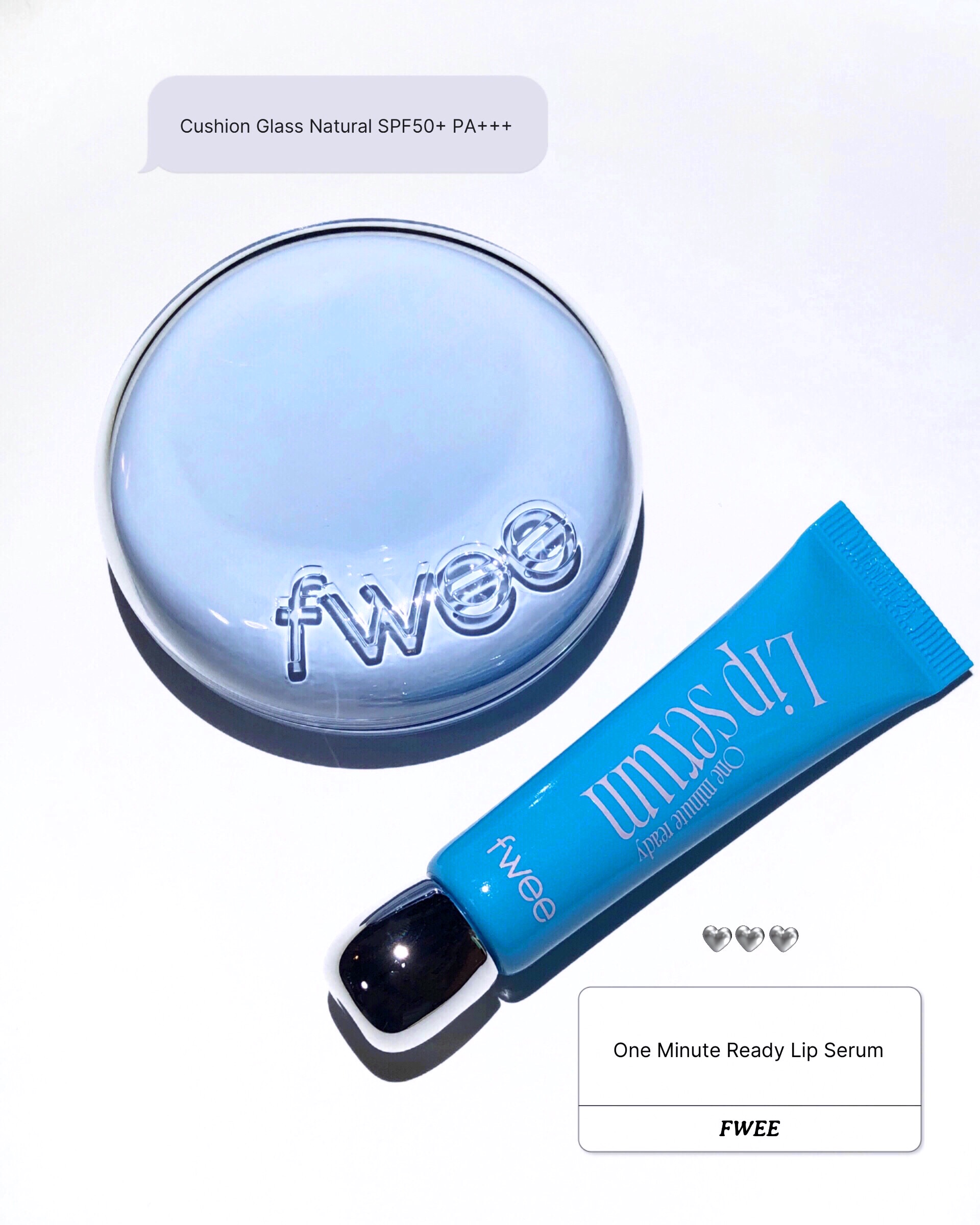 fweeのベースメイク✍🏻格上げアイテムツヤクッション&リップセラム🩵🫧✦fweeクッションガラスナチュラルワンミニッツレディリップセラム水色パケが可愛いfweeのクッションファンデはツヤ肌仕上がりが綺麗!SPF50+PA+++だから紫外線対...