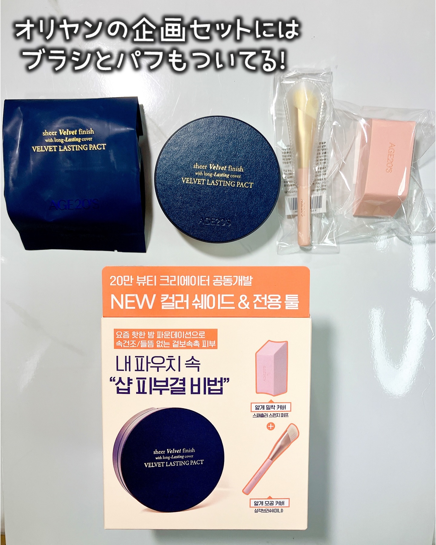 \まるでメイクサロン級の仕上がり/AGE20'S■ベルベットラスティングパクト本品14g+リフィル14gffroiエディション&ブラシ+スポンジセットSPF50/PA++++AGE20'Sクリームテクスチャーならではのしっとりとした使い心地と...