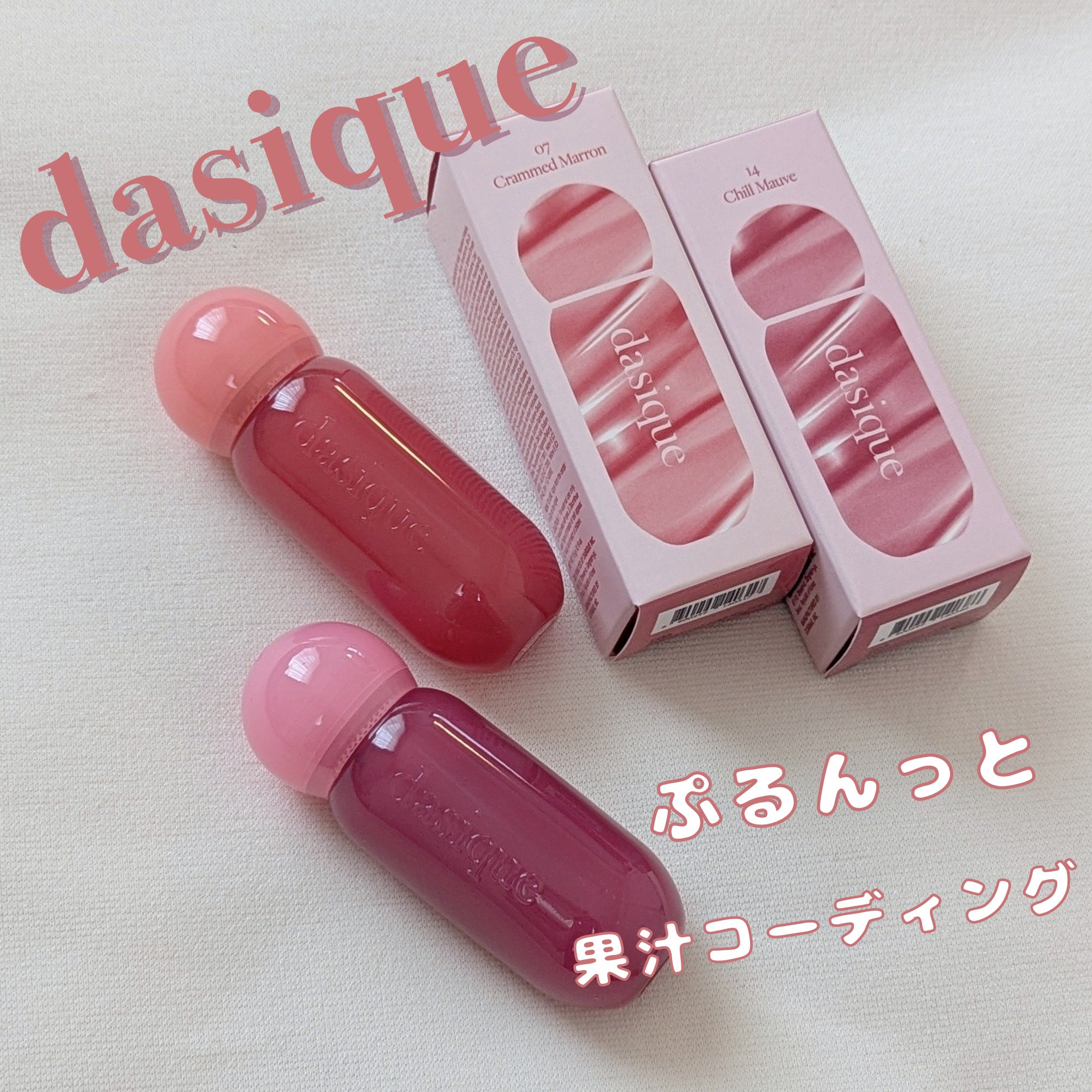 #PRdasiqueさんからジューシーデューイティントをいただきました🩷うる艶むっちり!発色ばっちり!色残りしっかり!な使い心地🥰01~07がイエベさん向け、08~14がブルベさん向けになってて分かりやすい♡私は07と14を試させてもらったよ...