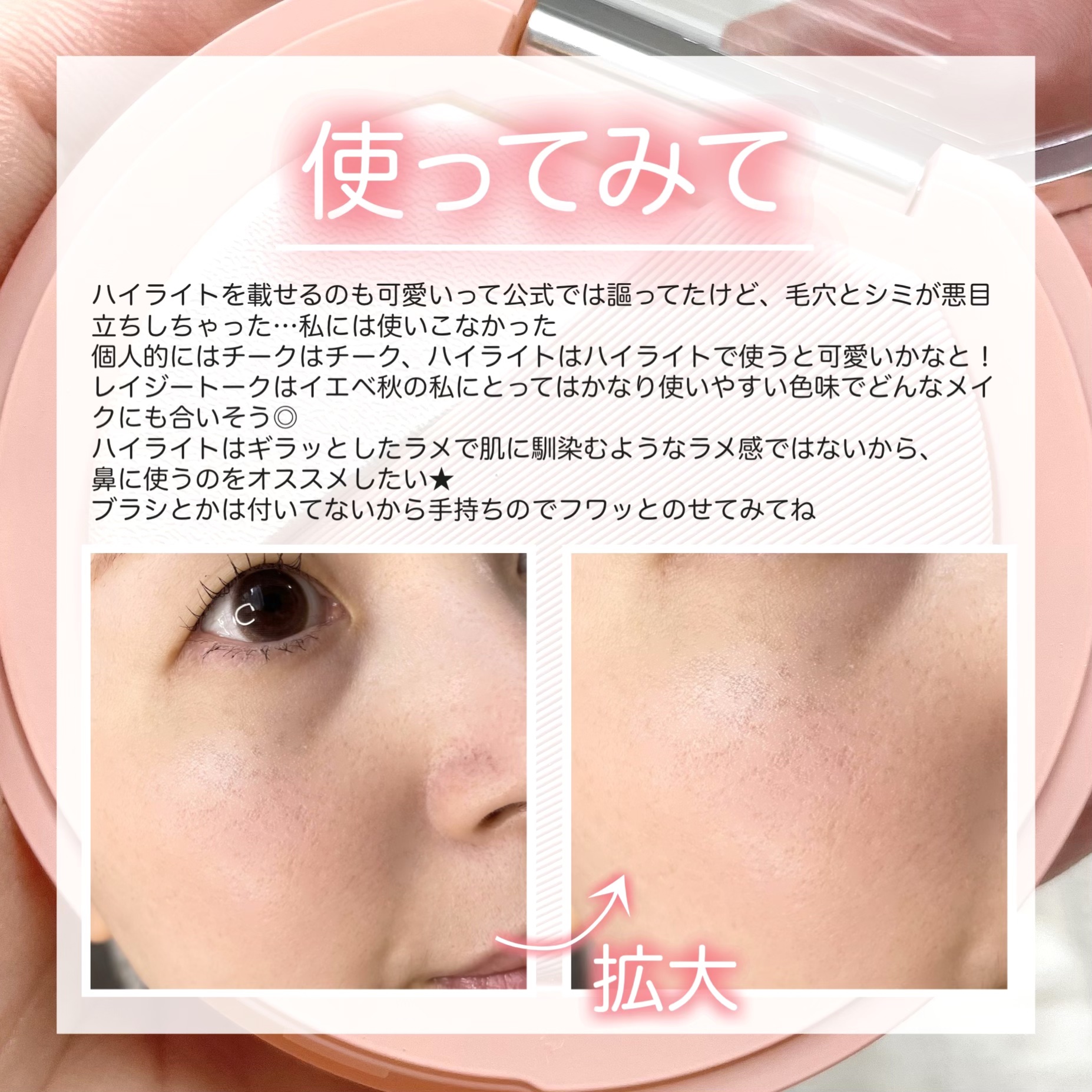 3月4日新発売!3CEのこだわりが詰まったチーク&ハイライト🎨 色相を使って計算しつくされた配色! 繊細なパールでツヤっと煌めく オーロラハイライト×ふんわり発色のヴェールチーク 私はチークカラーをアイシャドウとして使うのにもハマってる! アイホール全体に塗って薄づきのベースカラーとして使うと可愛いよ♡