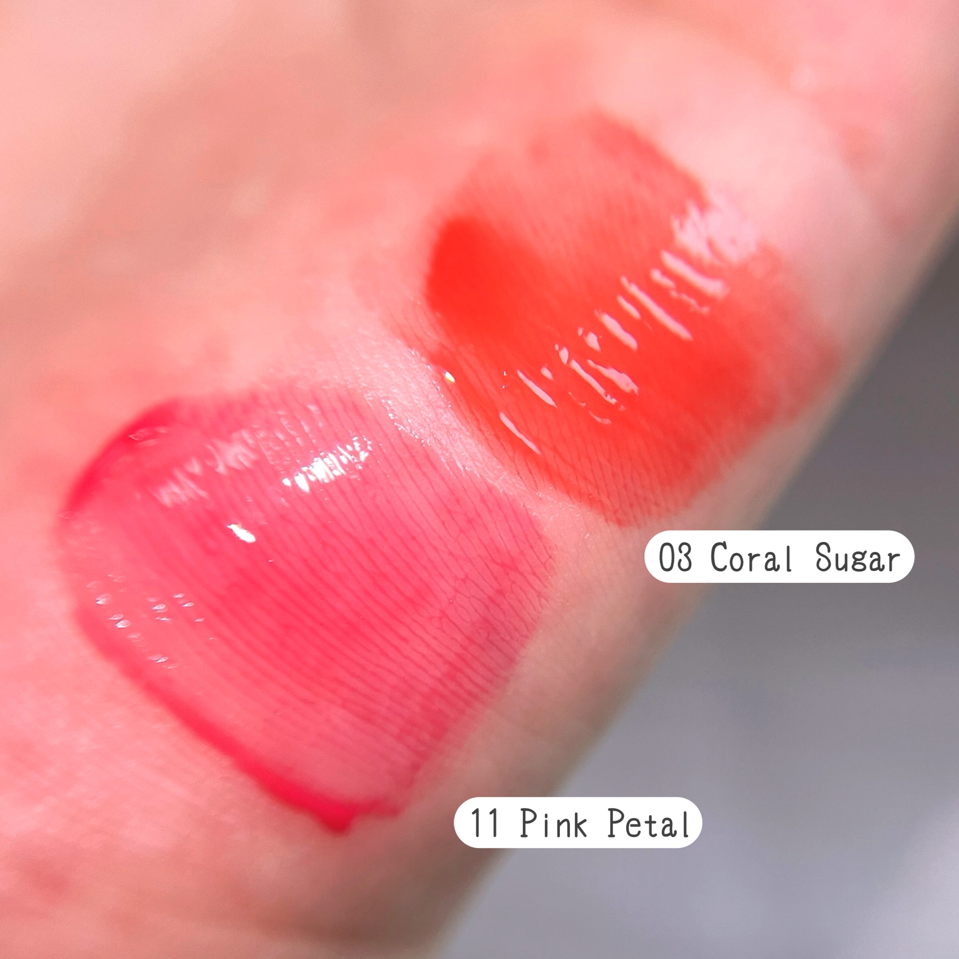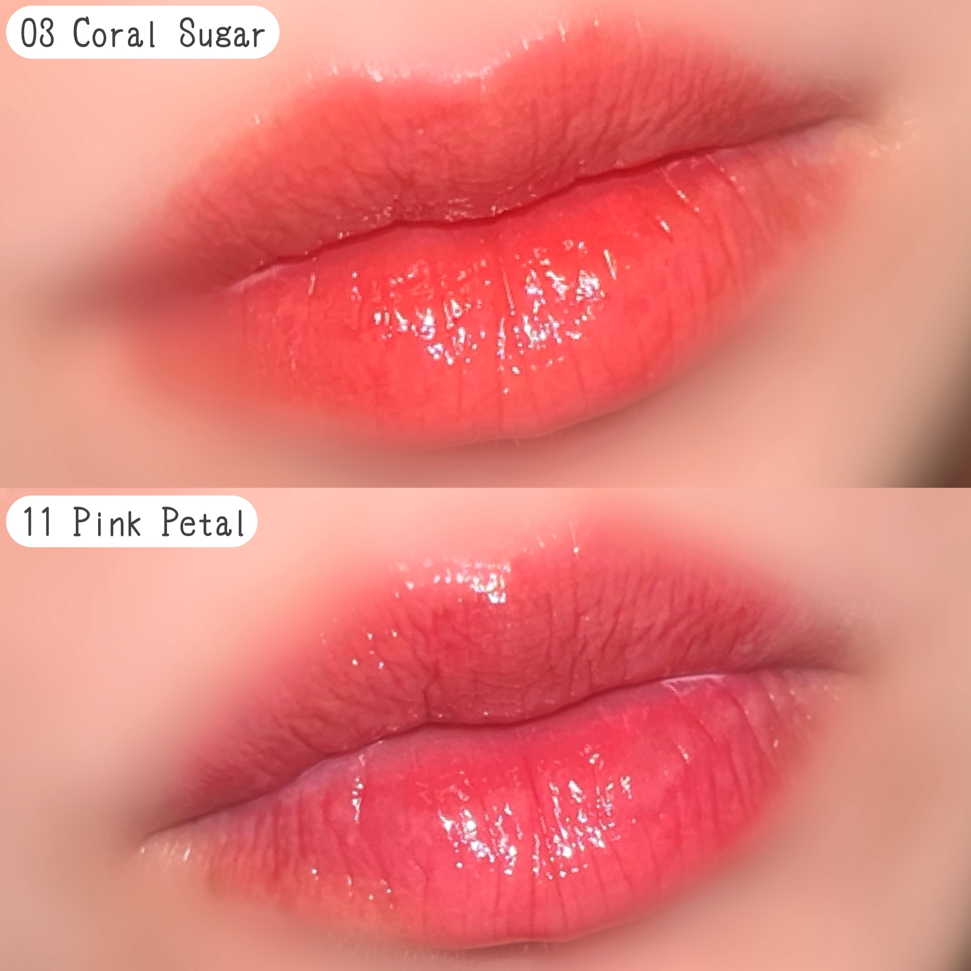 - 【夏新作2カラー登場!】 まるで果実のしずくがそのままリップになったような、みずみずしさと繊細なツヤを詰め込んだ「ジュージーデューイグロウティント」 夏新作で登場する新色「ベリーハート」、「タロミルク」は、透明感とふんわりとした色づきを徹底的にこだわって、何度もテストを重ねて生まれた特別なクールトーンカラー。 ひと塗りで唇をうるおし、重ねても重くならず、果実たっぷり!光をまとうような仕上がりに! - 蜂蜜に漬けた果物のように、うるちゅるふっくらとした果汁粘膜「ジューシーデュイグロウティント」 ミニだけの限定4色 15 ローストロベリー 16 ハミングピンク 17 ロージーシナモン 18 モーブディープス ♡唇に触れた途端、ぷるんと色っぽい果汁コーティング 果汁コーティングがじゅわっと唇に広がり、透明に輝くうるちゅる感を!蜂蜜に漬けた果物のようにぷるんぷるんとした唇を演出するグロウティント ♡イエベ、ブルべに合わせた多彩なカラーバリエーション 14色のカラーバリエーションで単独または、2色レイヤーリングして様々なリップメイクを演出 ♡ティント+リップグロスを一気に塗る効果! ティントの鮮やかな発色とリップグロスのうるうる透明ツヤ感が何度塗り重ねてもべたつかせず、唇にピタッと密着! 2025年11月1日(土)より、Qoo10公式ショップおよび東京フラッグシップストアにて発売予定