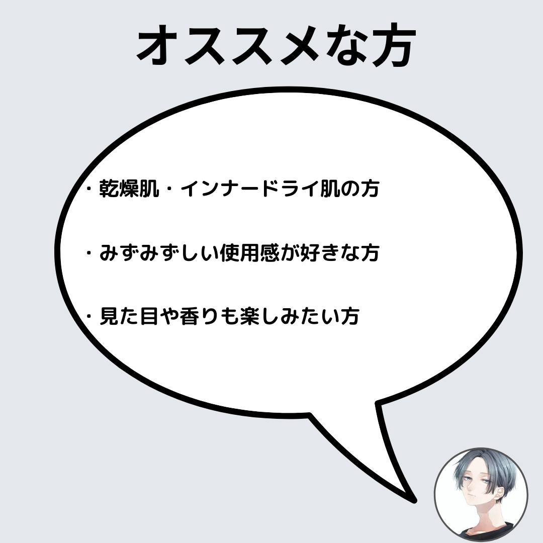 | スキンケアランキング第1位 | ベタつきもなくしっとり保湿されたような感じです♪香水っぽい上品な香りがします。 | 詳細を見る | |