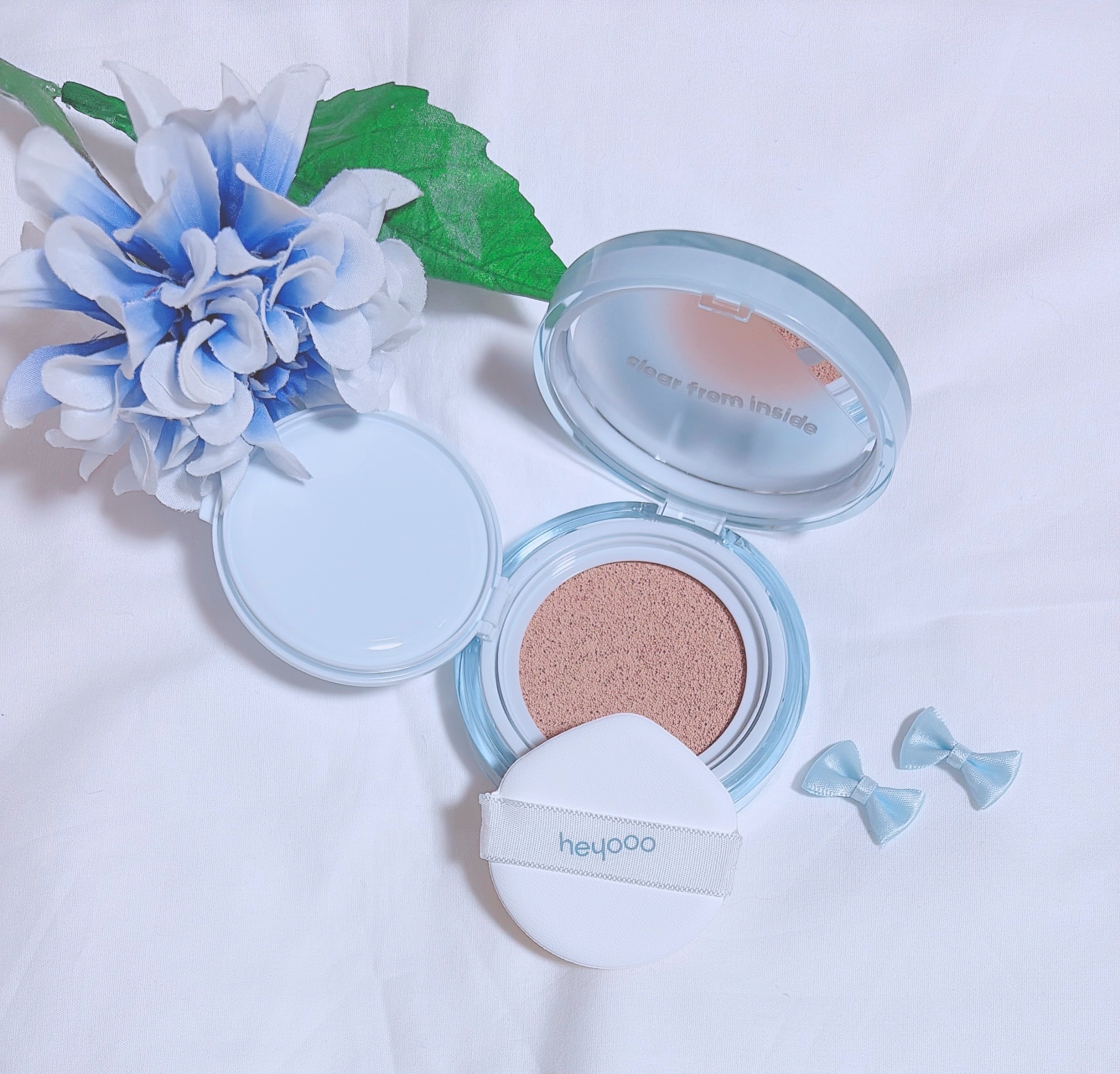光沢肌で健康的で生き生きした表情に🥰heyoooヘルシーグロウクッション使ってみたよ🩵🩵🩵17号oatmeal21号buttercreamの2色展開。みずみずしいうるうるツヤツヤテクスチャー✨伸びがいいからお肌にしっとり密着して気になる部分...