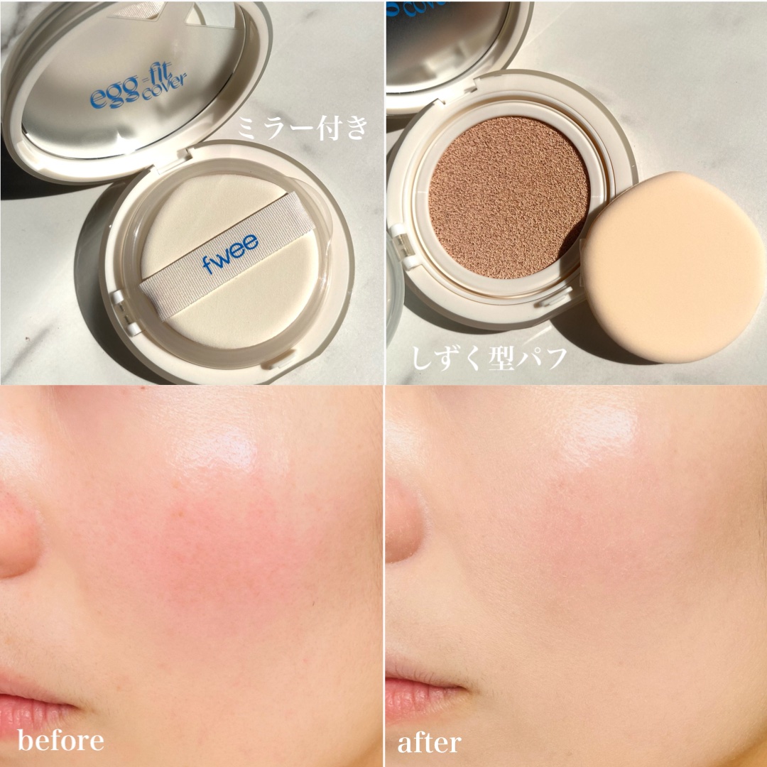 fwee様のモニターCPに当選して💙クッションエッグフィットカバー💙ワンミニッツレディリップセラムをお試しさせて頂きました✨ベースメイクの質を上げちゃうfwee最強コンビ🥰コロンとした形がかわいいクッションエッグフィットカバーはむき卵肌を叶え...